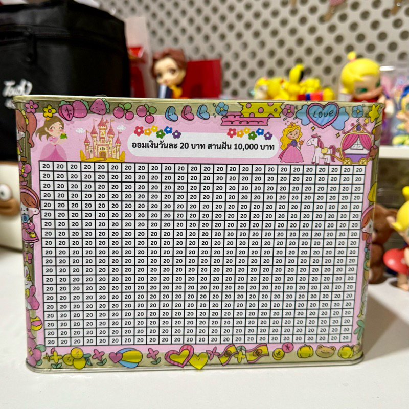 กระปุกออมสินปี๊บ (รุ่นคลาสสิค) ขนาด 20*15 CM พร้อมตารางออมวันละ 20/50/100 (มีกันชื้น)