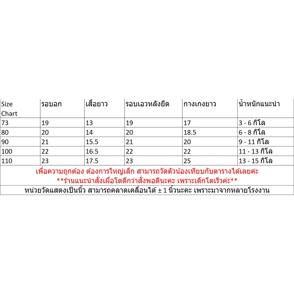 **ร้านแนะนำถ้าวัดขนาดแล้วพอดีมากมาก หรือน้องตัวโตจ้ำม่ำกว่าเด็กทั่วไป