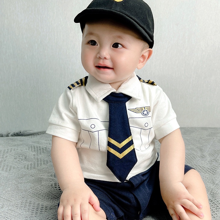 ชุดบอดี้สูทรอมเปอร์ ผ้าฝ้าย แบบบาง ลายกัปตัน แฟชั่นฤดูร้อน สําหรับเด็กทารกแรกเกิด