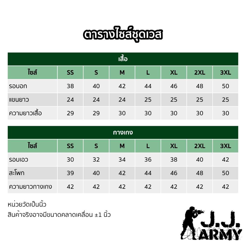 SS = เสื้ออก 38" / กางเกงเอว 30"