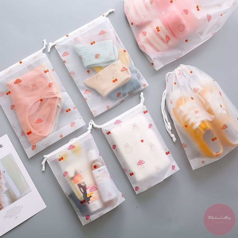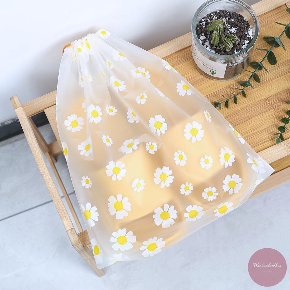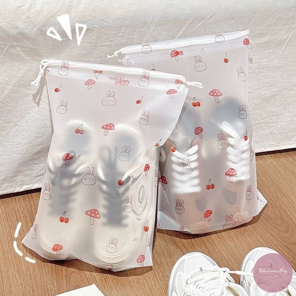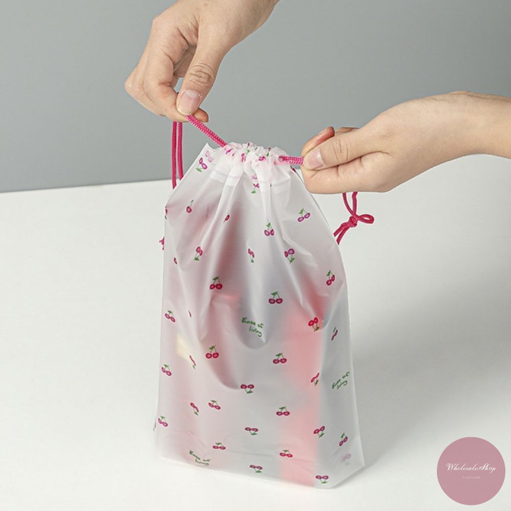 ถุงหูรูดพลาสติก มีสายหูหิ้ว ใส่รองเท้า ใส่ของอเนกประสงค์ หลากหลายไซส์ ลายเชอร์รี่ / เดซี่ / กระต่ายเห็ด เลือกลายได้