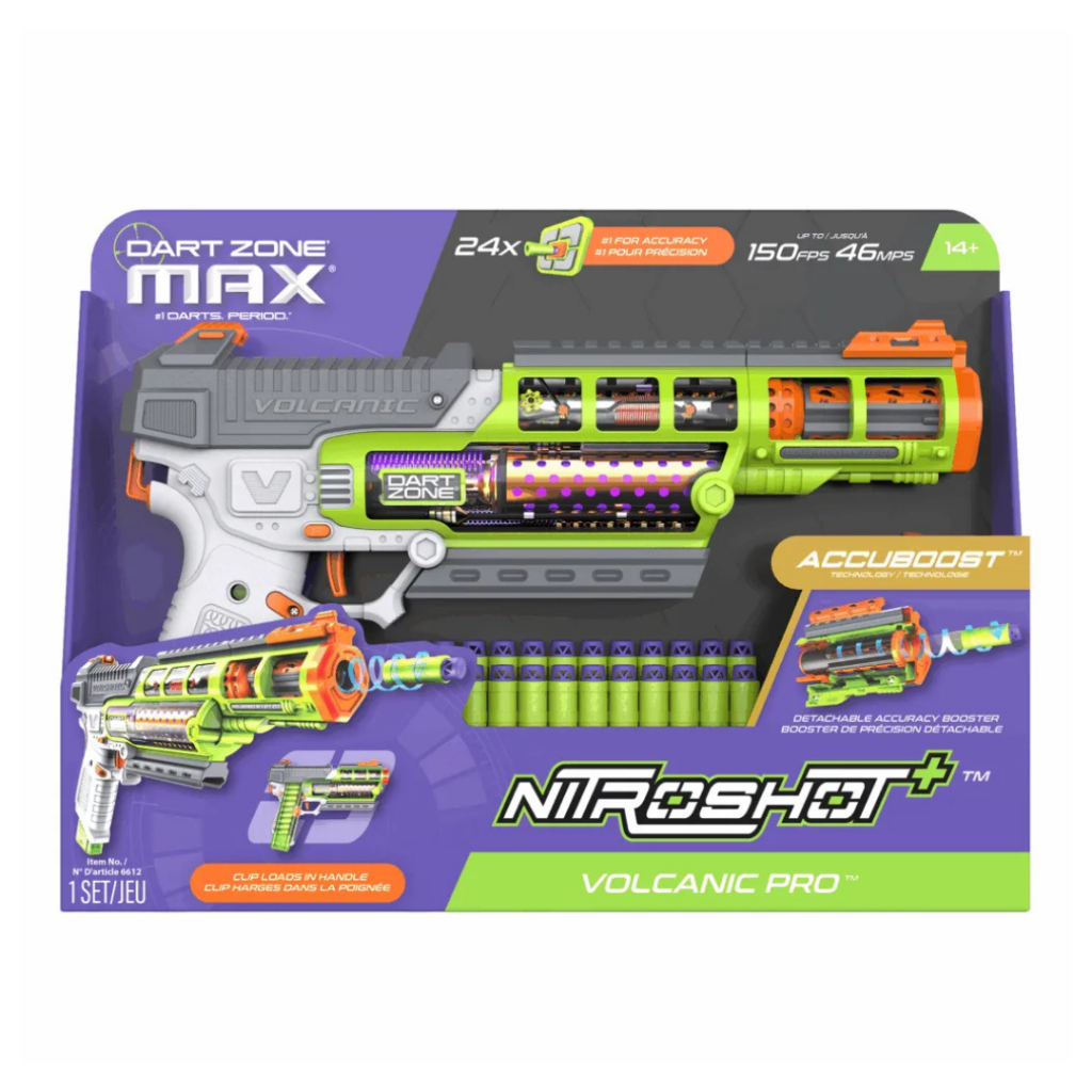- ชื่อสินค้า: DART ZONE® MAX Nitroshot+ Volcanic Pro Blaster ปืนกระสุนโฟมดาร์ทโซน ไนโตรช็อต โวลแคนิค โปร