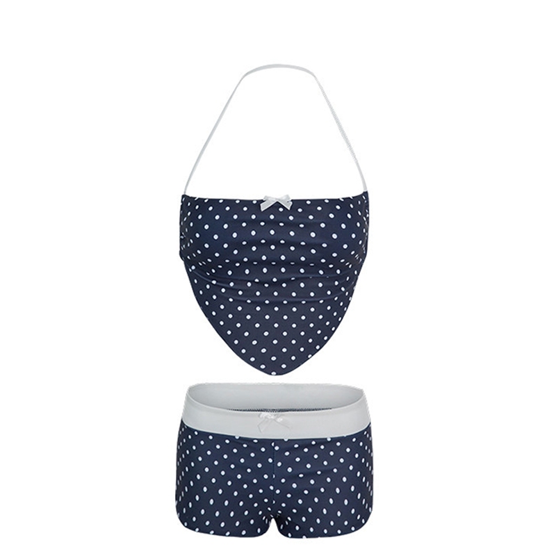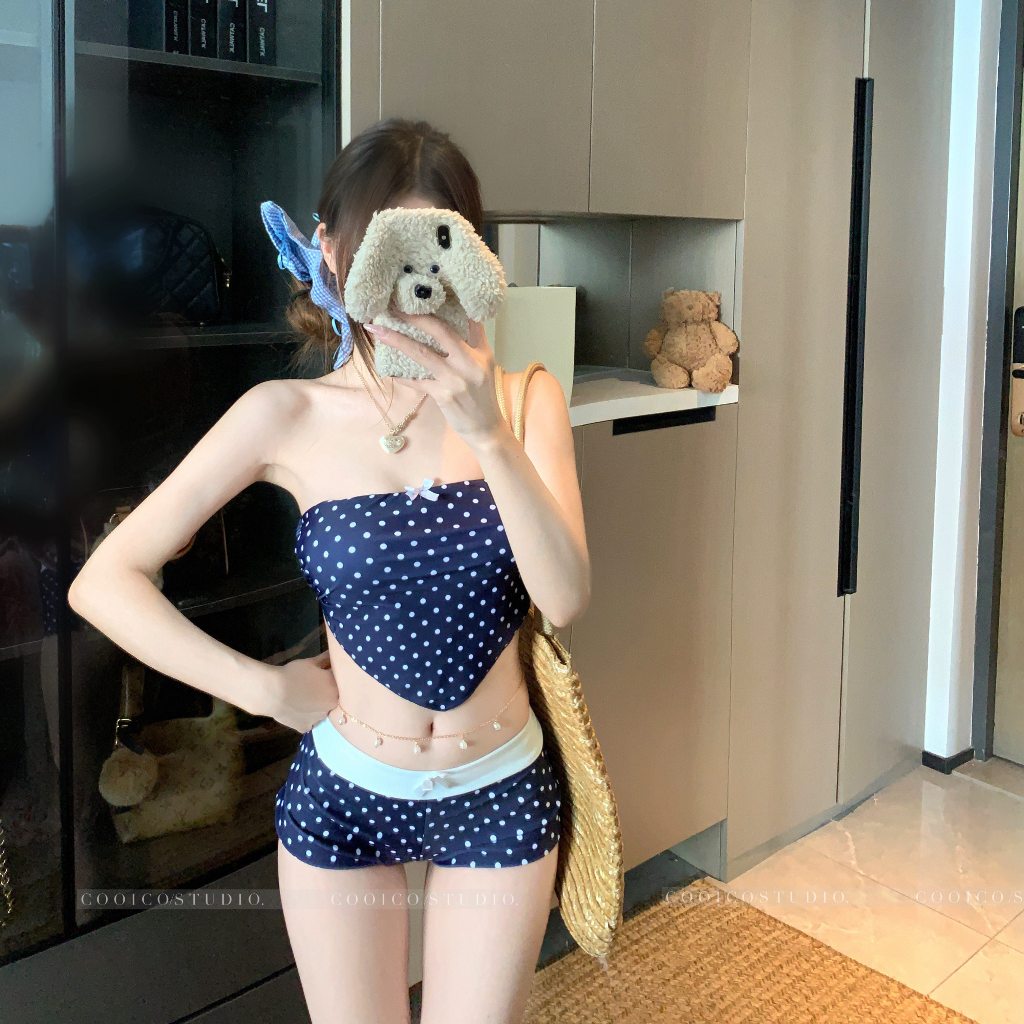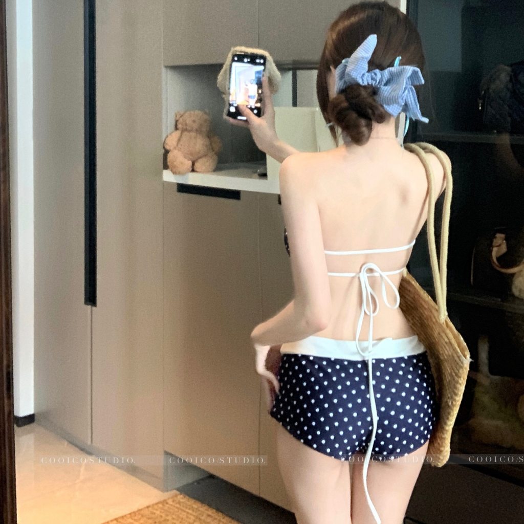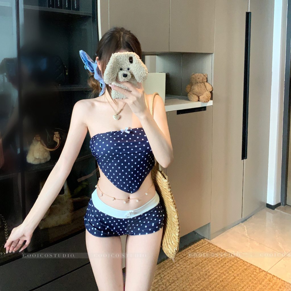 พร้อมส่ง ✨ ชุดว่ายน้ำผู้หญิง Bikini บิกินี่เซ็ต 2 ชิ้น ทรงเช็ดหน้า ลายจุดวินเทจ สไตล์อเมริกันเกิร์ล เท่ๆ ปนหวาน#1102