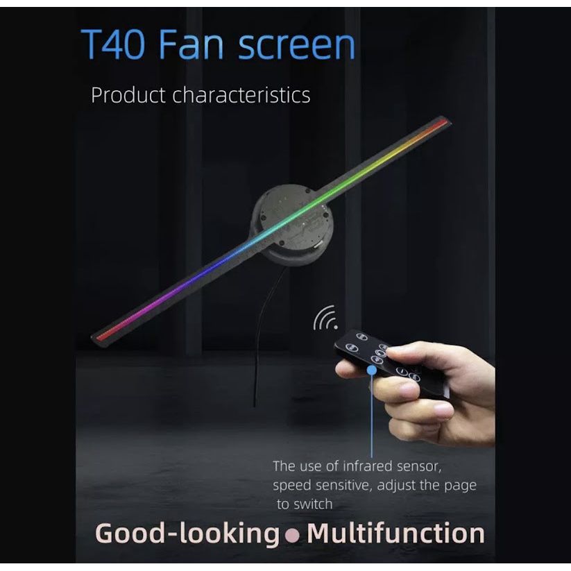 พร้อมส่ง T40 3D โฮโลแกรมโปรเจคเตอร์โฆษณาพัดลมติดผนังผู้เล่น800*800 224ชิ้น3D Holographic Eye LED photo Video พัดลม