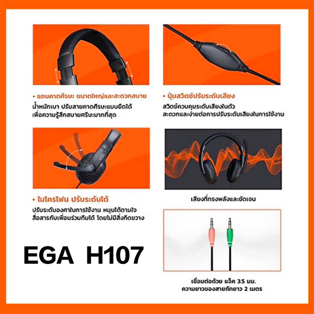 🔥 มาใหม่! EGA LITE TYPE H107 หูฟังเกมมิ่งขนาดกระทัดรัด ดีไซน์เหมาะกับการใช้งาน ไม่ว่าจะดูหนัง ฟังเพลง ก็ตอบโจทย์ทุกการใช้งาน! เชื่อมต่อง่ายๆ ผ่านสาย Jack 3.5mm 2 สาย หูฟังยืดหยุ่น ใส่นานไม่ปวดหู ไม่อับ แน่นอน!! 🔥
