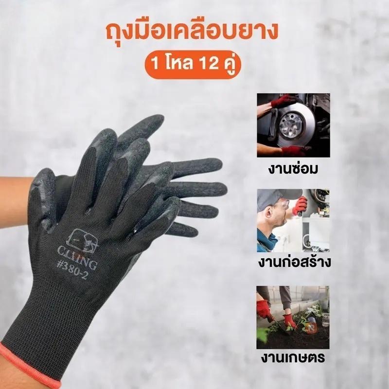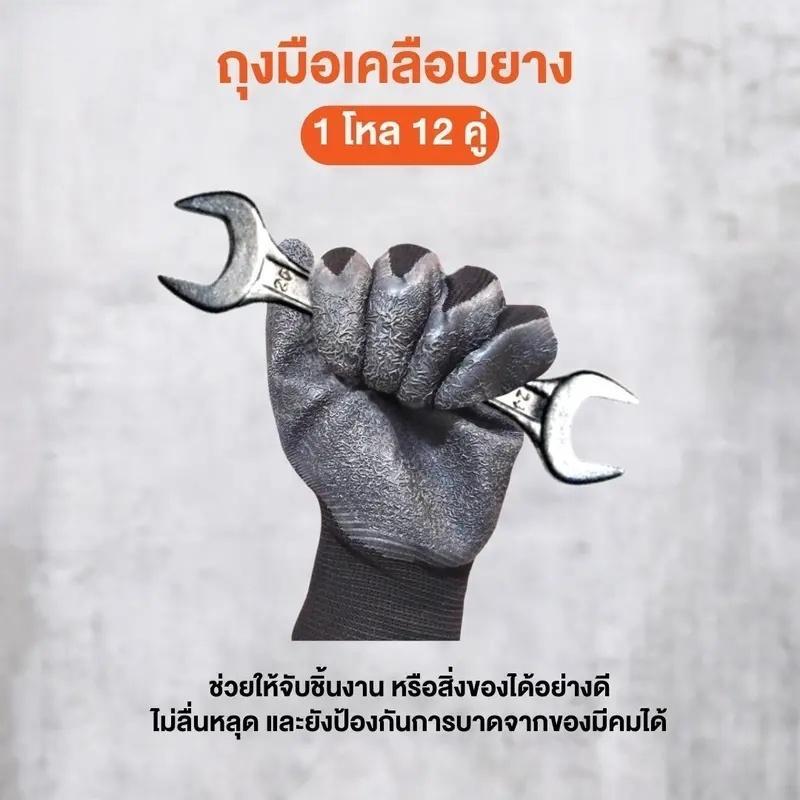 (ยก) (12คู่) ถุงมือเคลือบยาง ถุงมือทํางาน ทําสวน กันลื่น กัน…