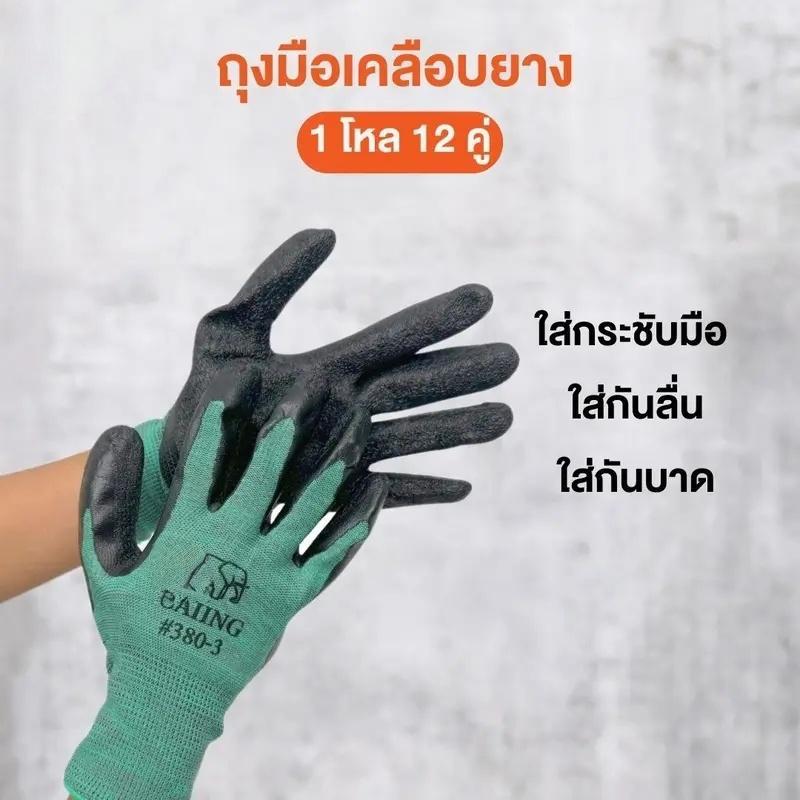 (ยกโหล) (12คู่) ถุงมือเคลือบยาง ถุงมือทำงาน ทำสวน กันลื่น กันบาด ถุงมือยาง ถุงมือกันของมีคมบาด ถุงมือช่าง พร้อมส่ง