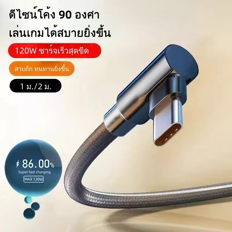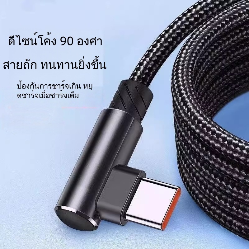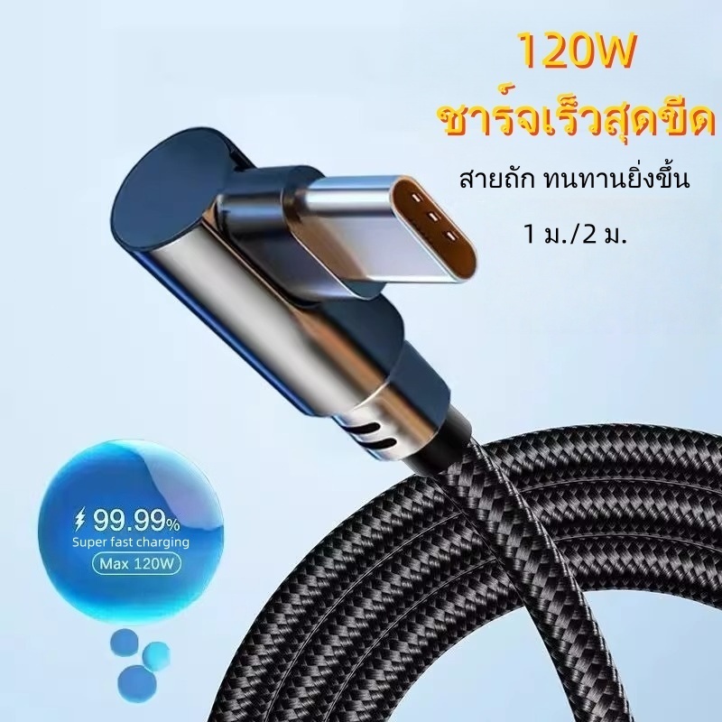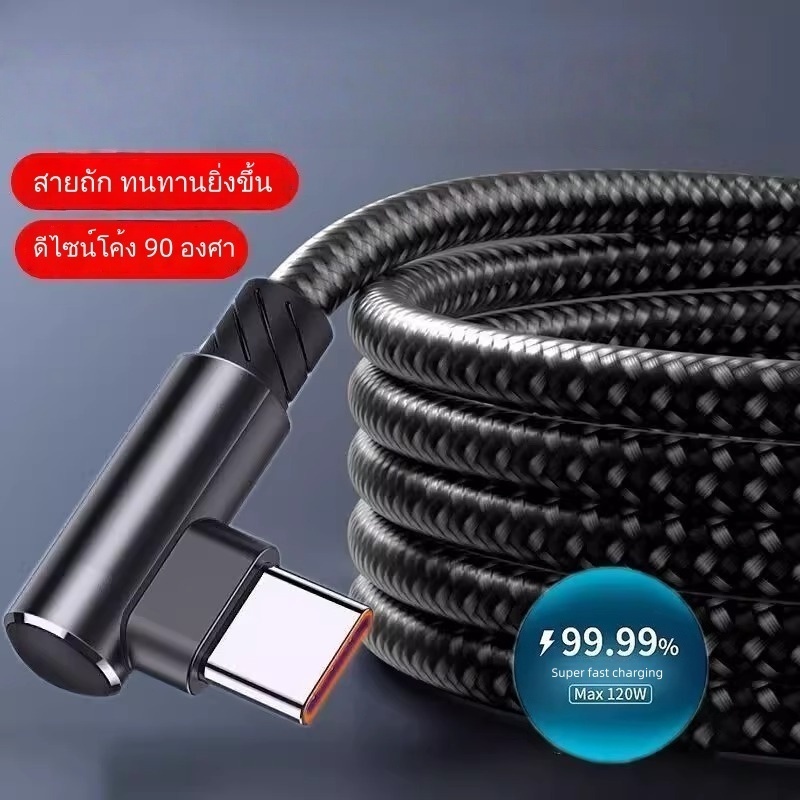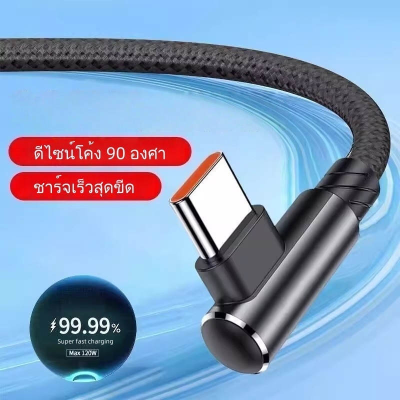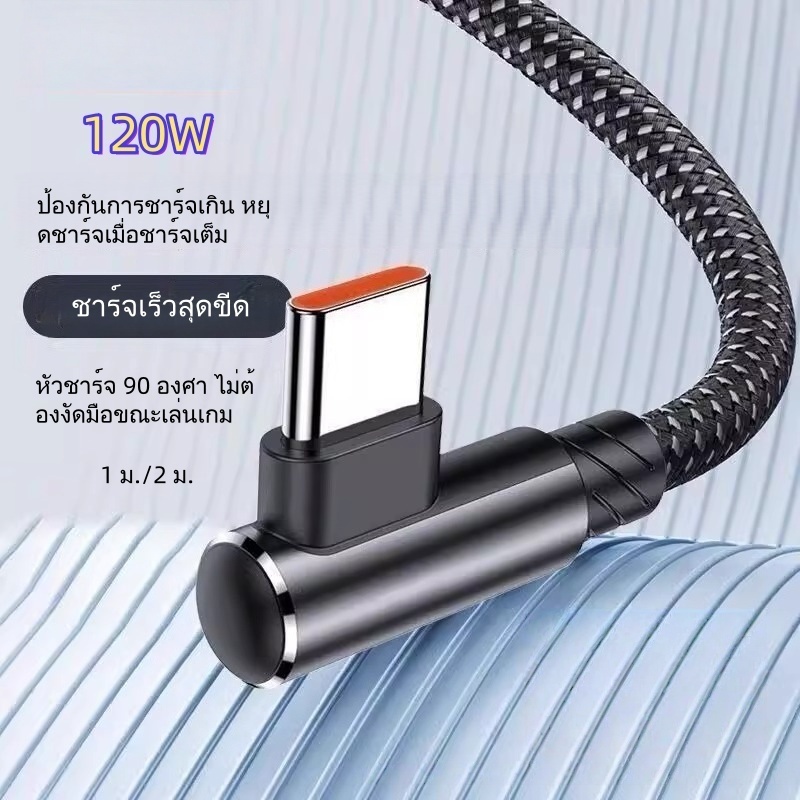 สายชาร์จเร็วพิเศษ 120W 6A สายถัก 90 องศา เหมาะสําหรับ Apple, Huawei, Oppo, เข้ากันได้กับ Type-C, iPhone, อินเทอร์เฟซ Micro USB, 1/2 เมตร