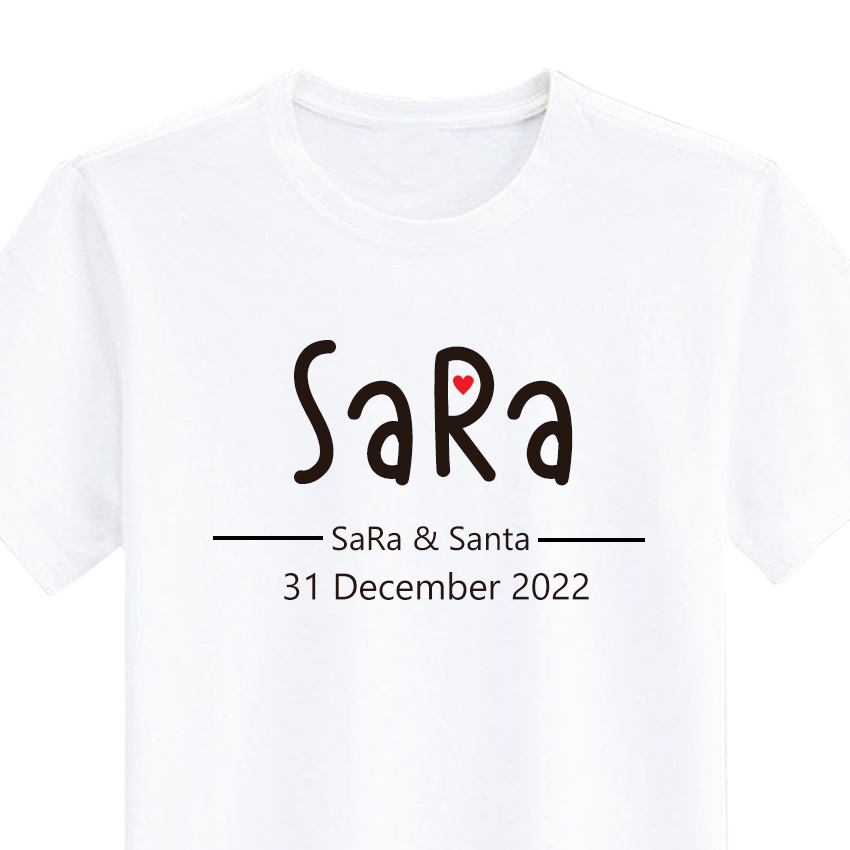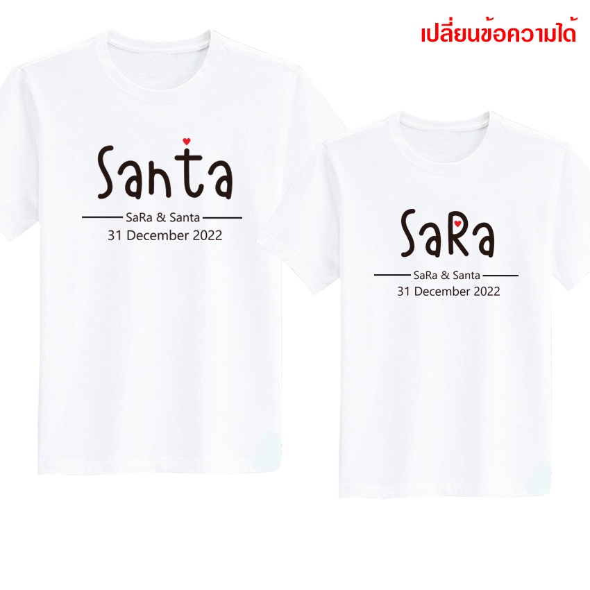 เสื้อยืด เสื้อคู่ เปลี่ยนชื่อ วันที่ฟรี สกรีน สีขาว เสื้อผ้าหนา นุ่ม ใส่สบาย ได้ทั้งผู้ชาย และผู้หญิง No.0243