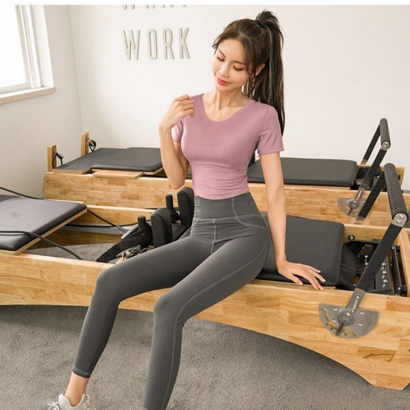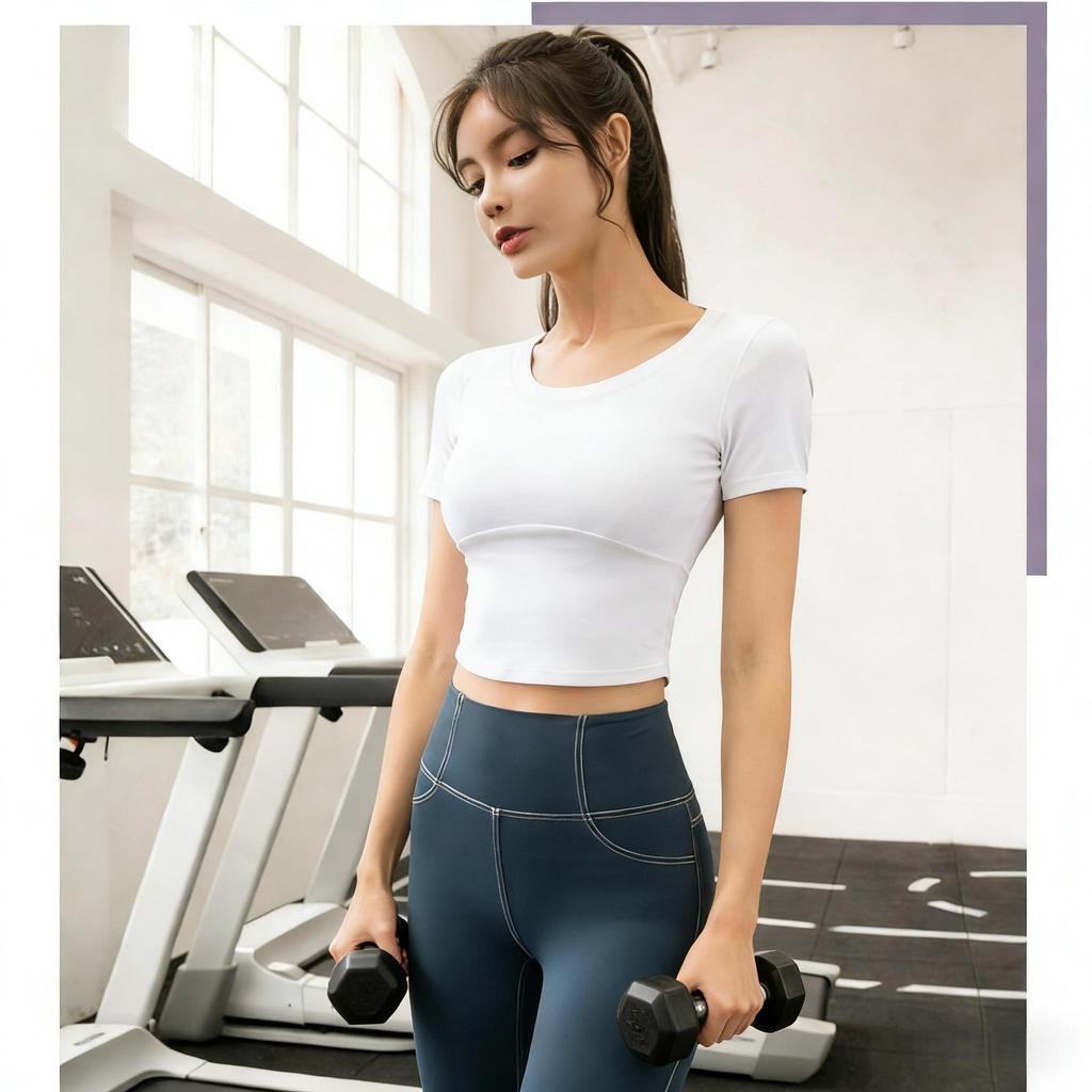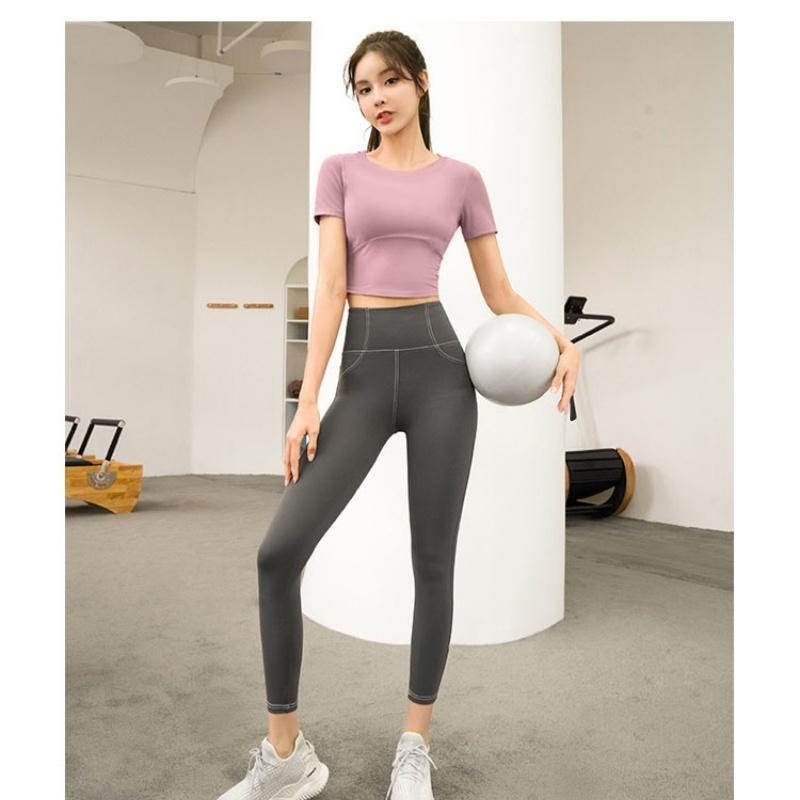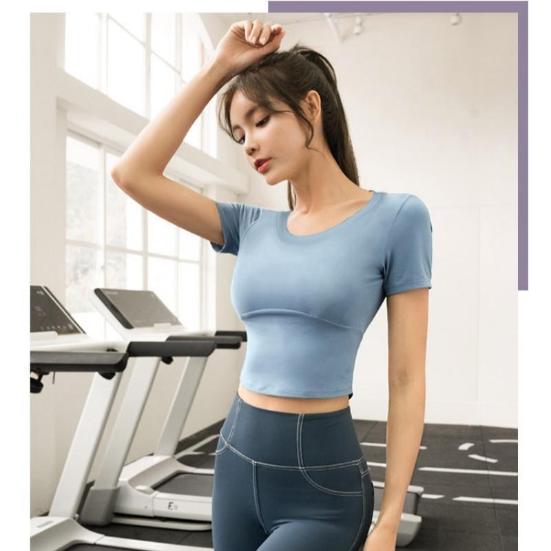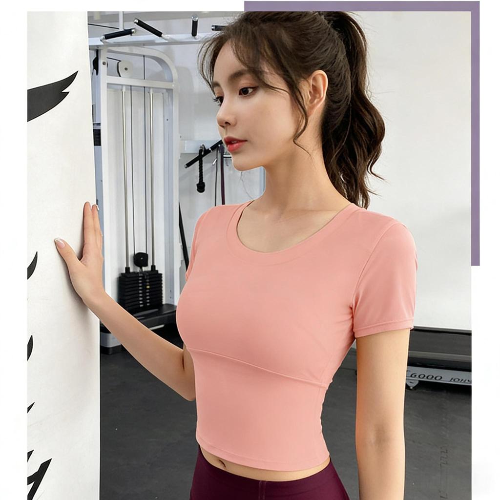 เสื้อ ผ้าออกกําลังกาย เสื้อโยคะแขนสั้นเข้ารูปสำหรับผู้หญิง เสื้อยืดกีฬากระชับสัดส่วน ขนาด S-3XL