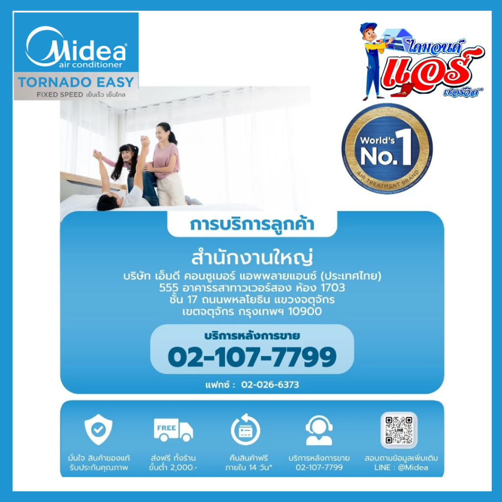 สินค้ามีปัญหาหลังติดตั้งแจ้งศูนย์บริการไมเดียได้โดยตรงที่