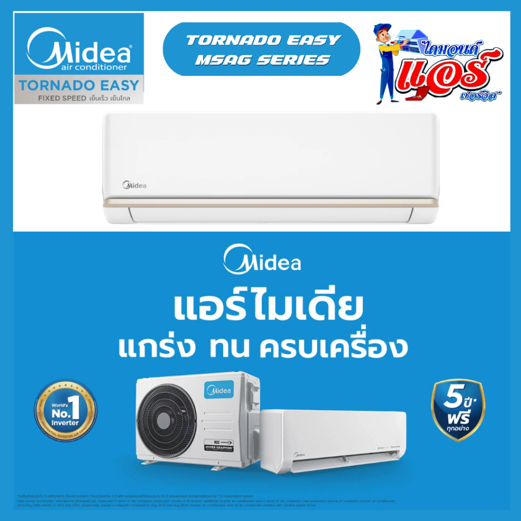 แอร์ติดผนัง Midea Fix Speed รุ่น MSAG ลดกระหน่ำ 30-70% ส่งฟรีทั่วไทย รับประกันอะไหล่ 5 ปี คอม 7 ปี