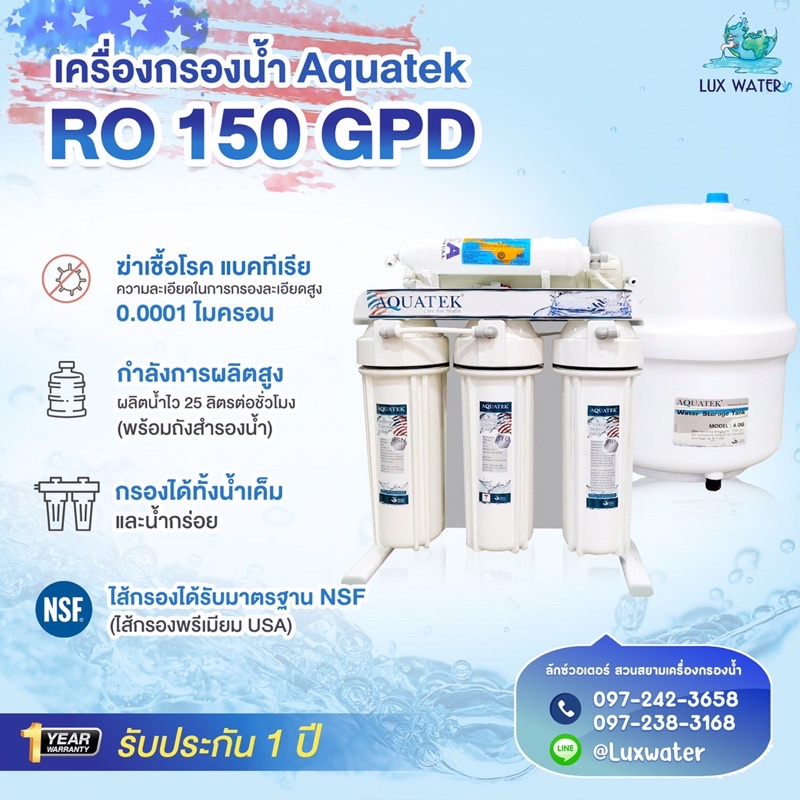 เครื่อง Aquatek RO 150 GPD ราคา 7,250 บาทค่ะ