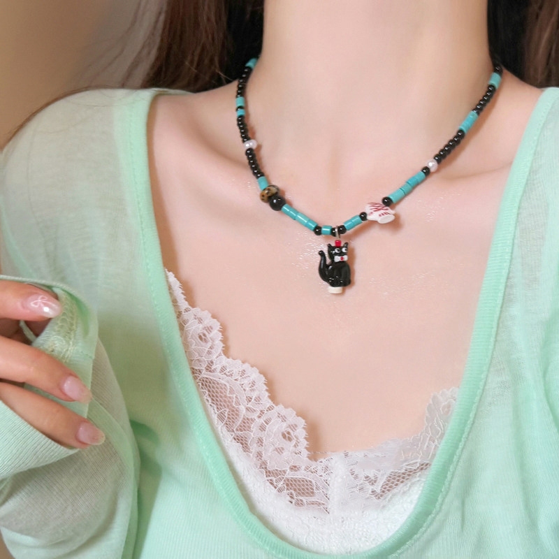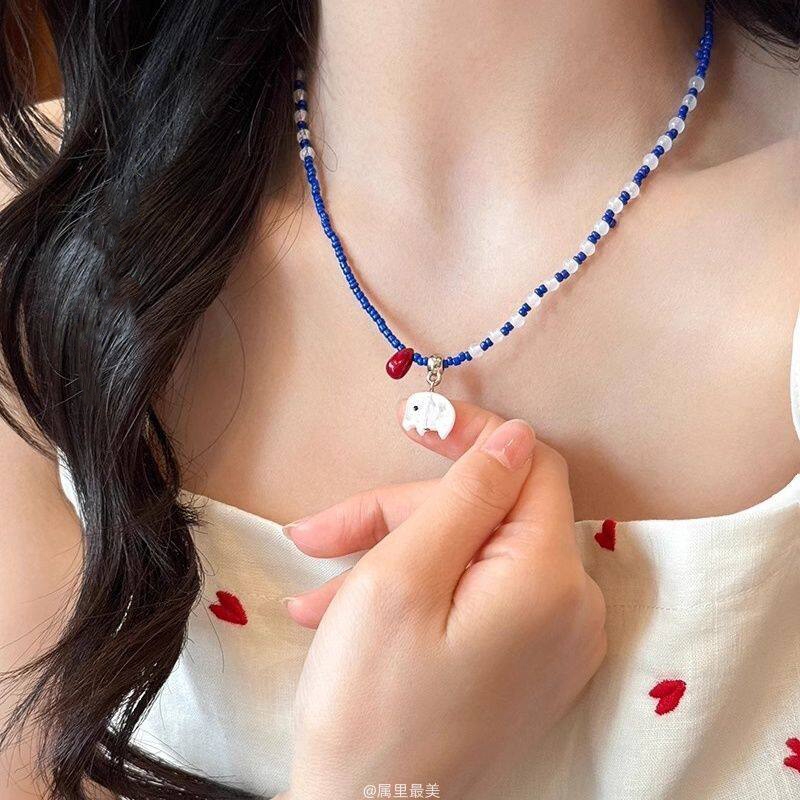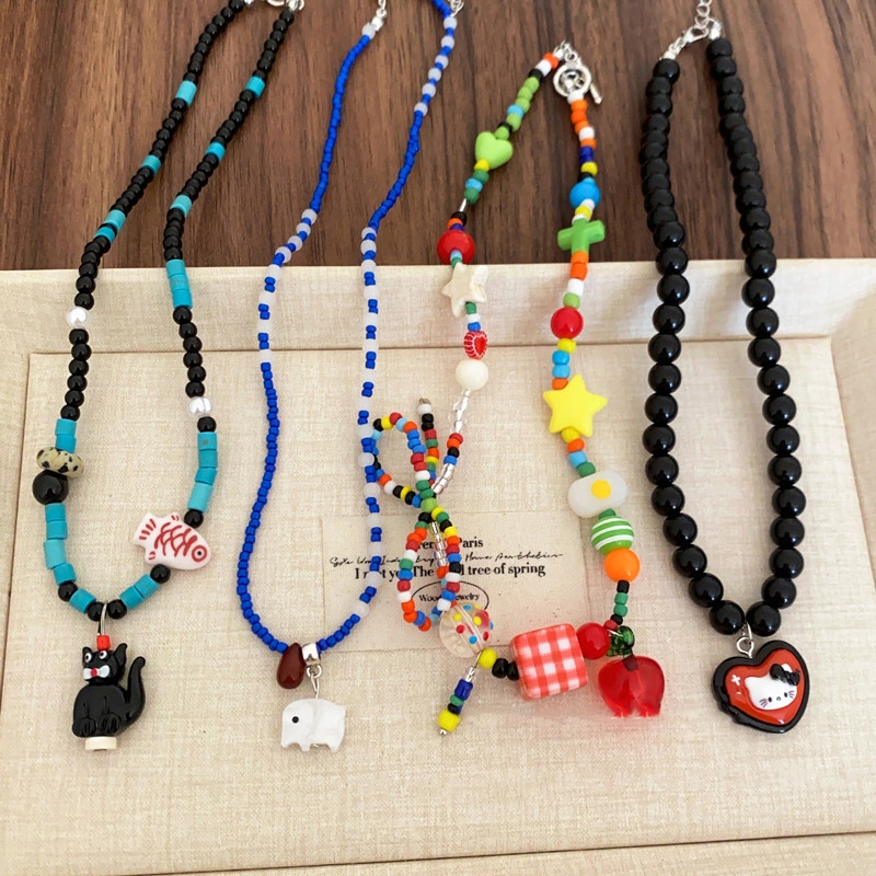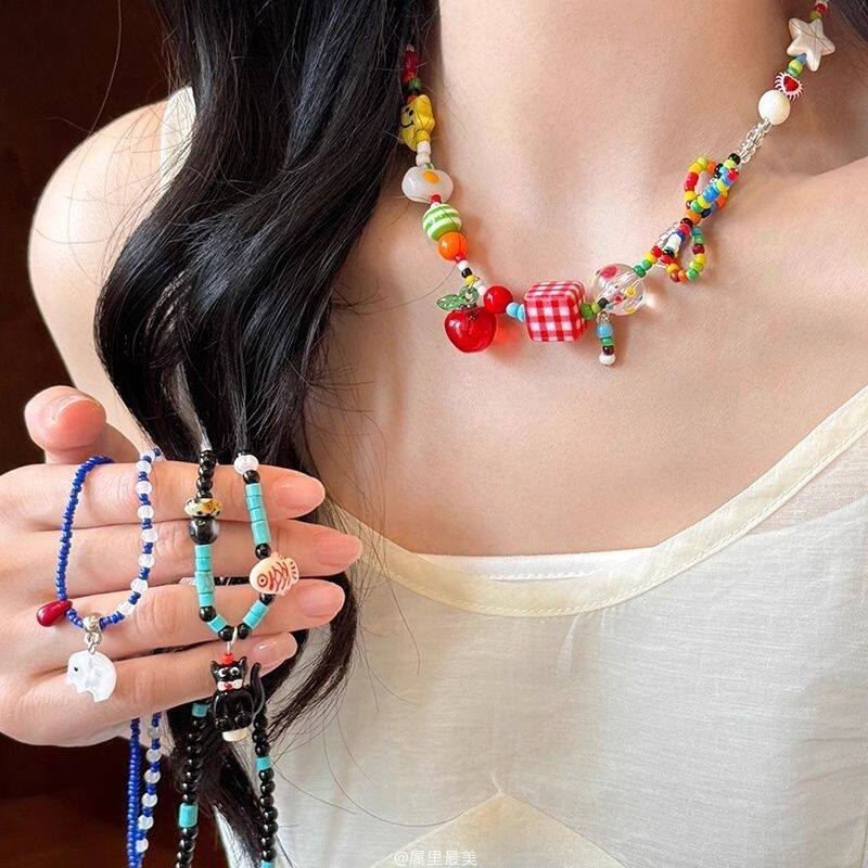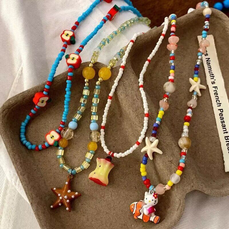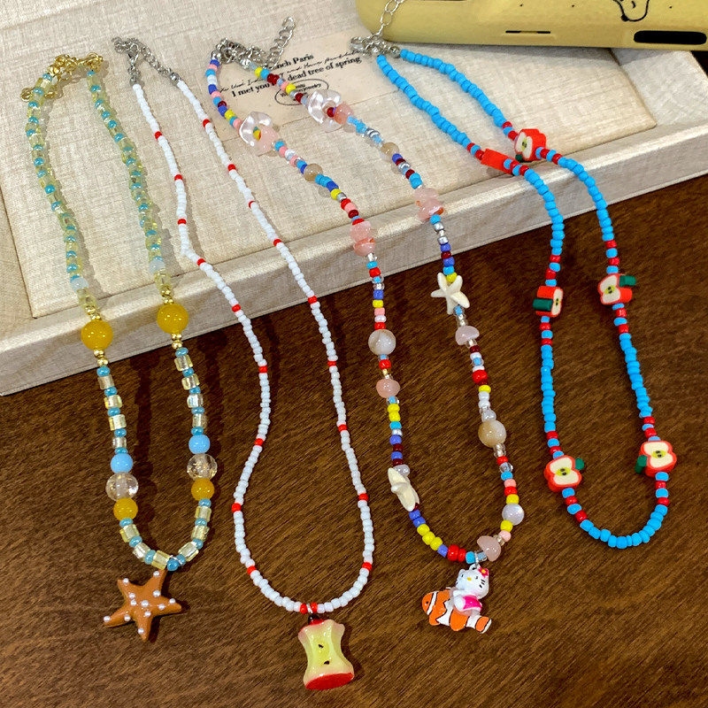 โดปามีน สไตล์ริมทะเลที่มีสีสันลูกปัดสร้อยคอปลาดาวแอปเปิ้ลปลาจี้สร้อยคอสําหรับผู้หญิงของขวัญวันเกิด
