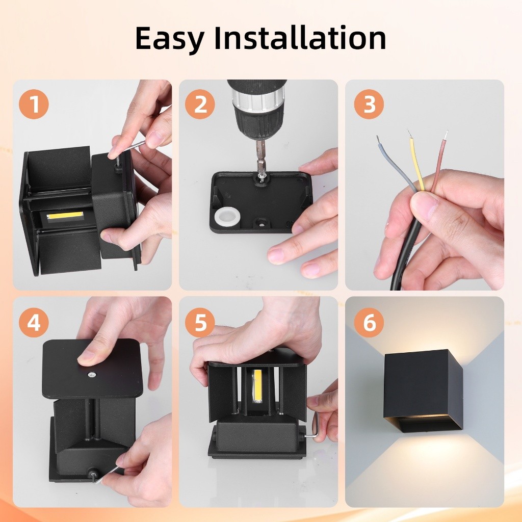ไฟสปอตไลท์ผนังใช้เวลาเพียงไม่กี่นาทีในการติดตั้ง ใช้สกรูเพื่อติดตั้งและแก้ไข (มีสกรู) และไม่จำเป็นต้องมีสายไฟที่ซับซ้อน