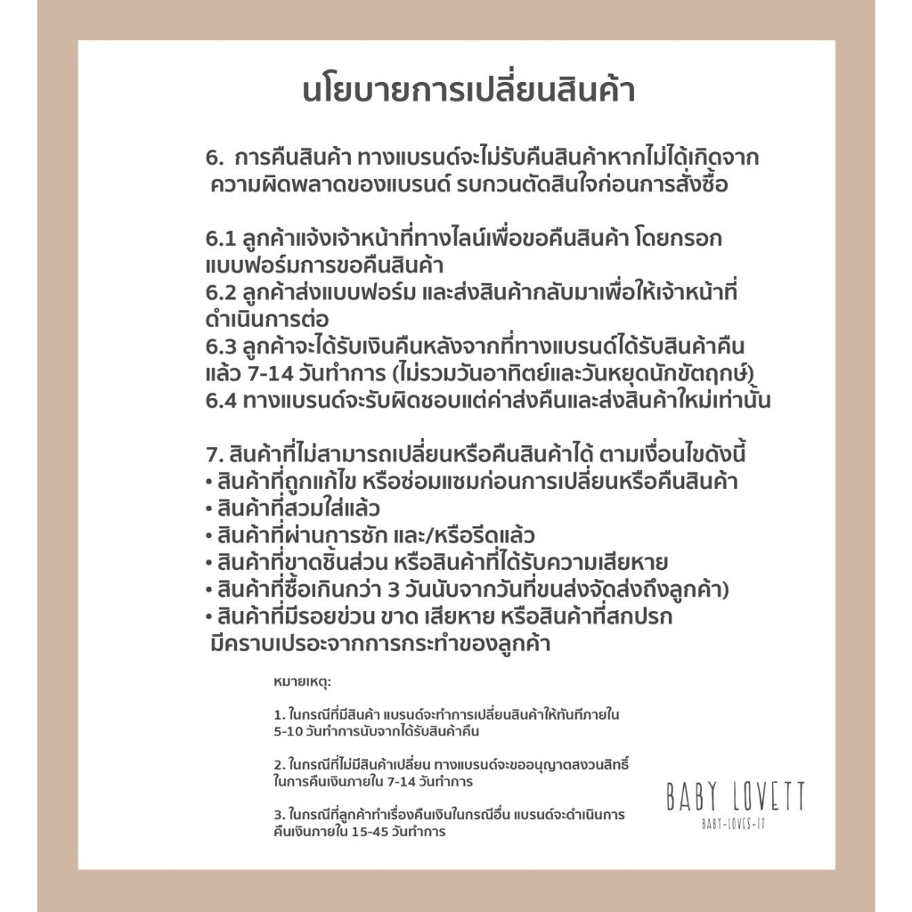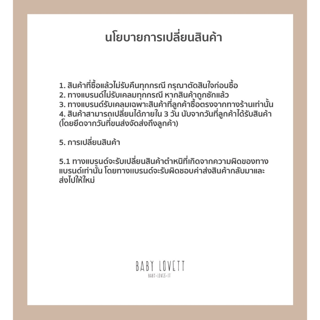 ** หากลูกค้าพบสินค้ามีปัญหารบกวนลูกค้าติดต่อทางไลน์ @babylovett เท่านั้นค่ะ