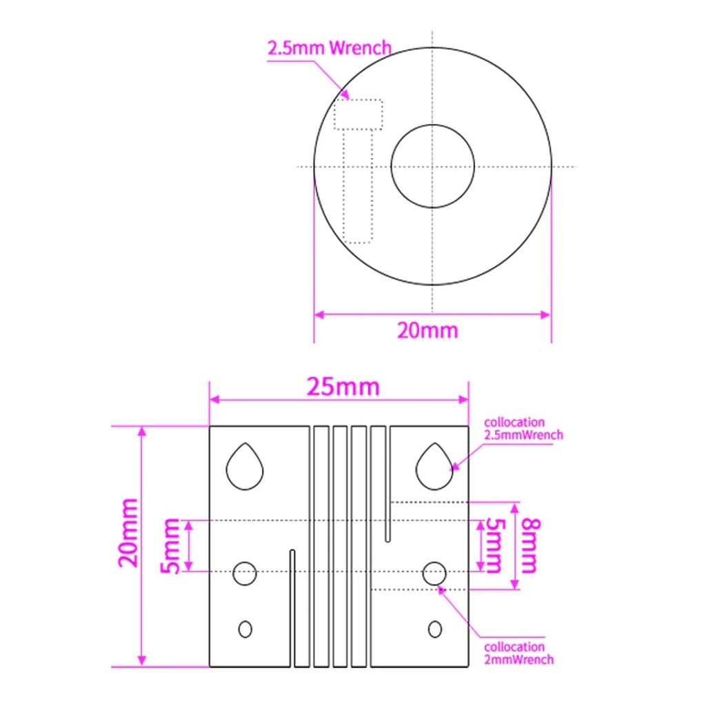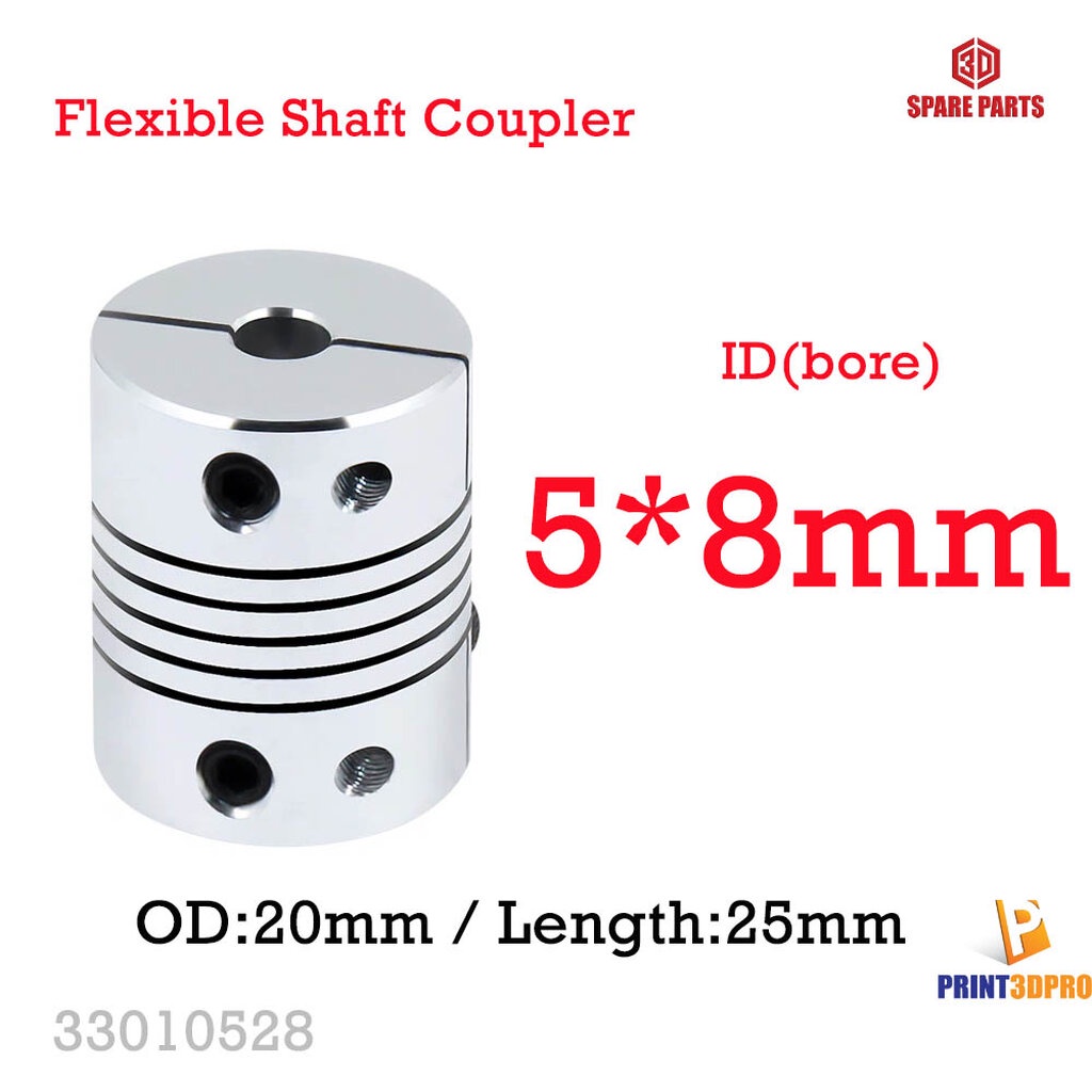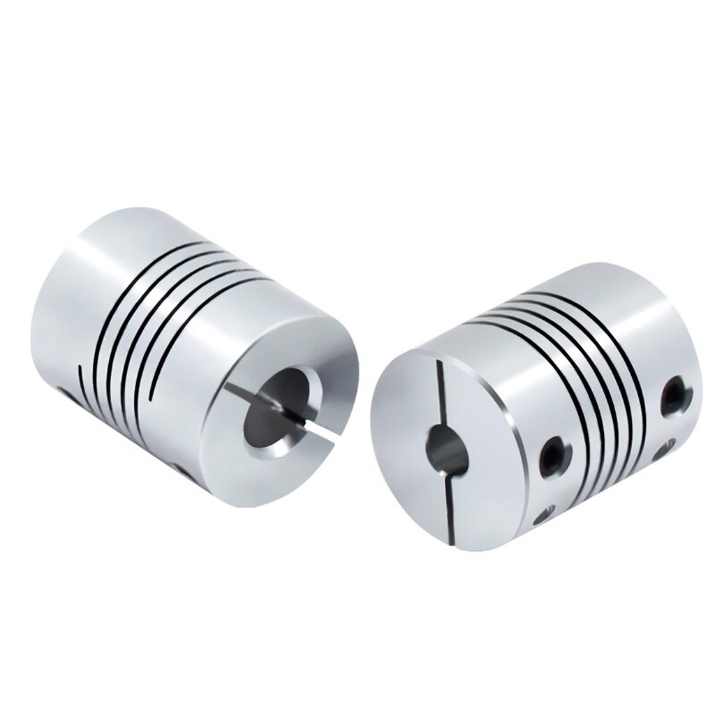 The coupler also includes grub screws for shaft flats.