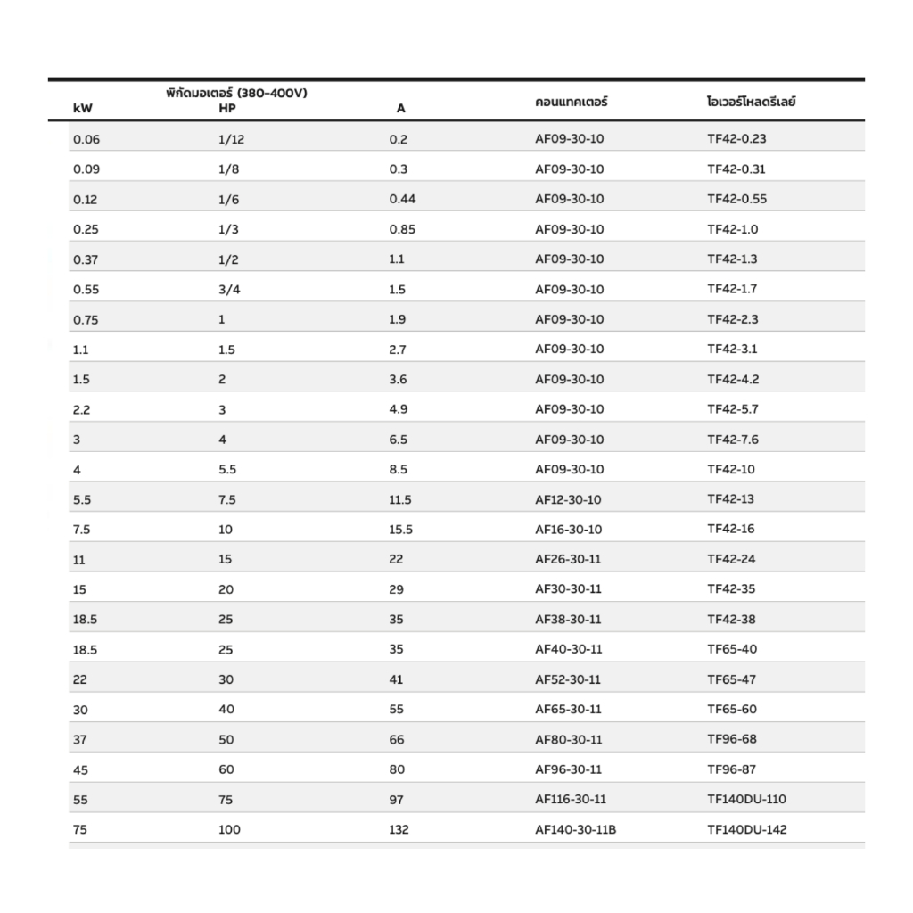ABB SET สตาร์ทเตอร์แบบ ไดเร็คออนไลน์ Direct On Line ( DOL ) AC-3 ( 0.06kW - 30kW )