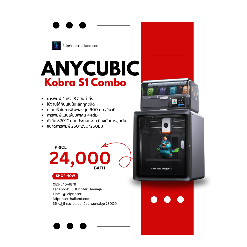 Anycubic Kobra S1 Combo Multi-Color 3DPrinter High Precision Core XY Stable Ultra Max Speed 600mm/s สามารถออก E-Tax ได้