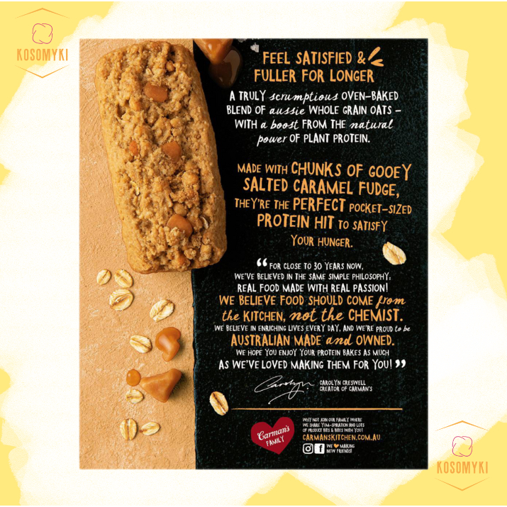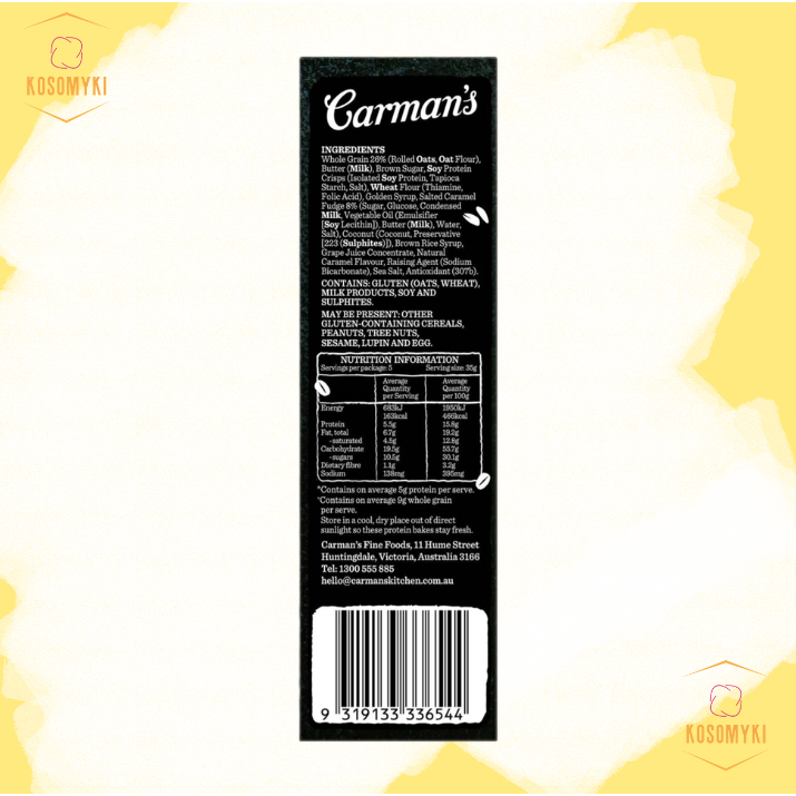Carman’s Salted Caramel Protein Bakes are a truly scrumptious oven-baked blend of Aussie whole grain oats – with a boost from the natural power of plant protein.