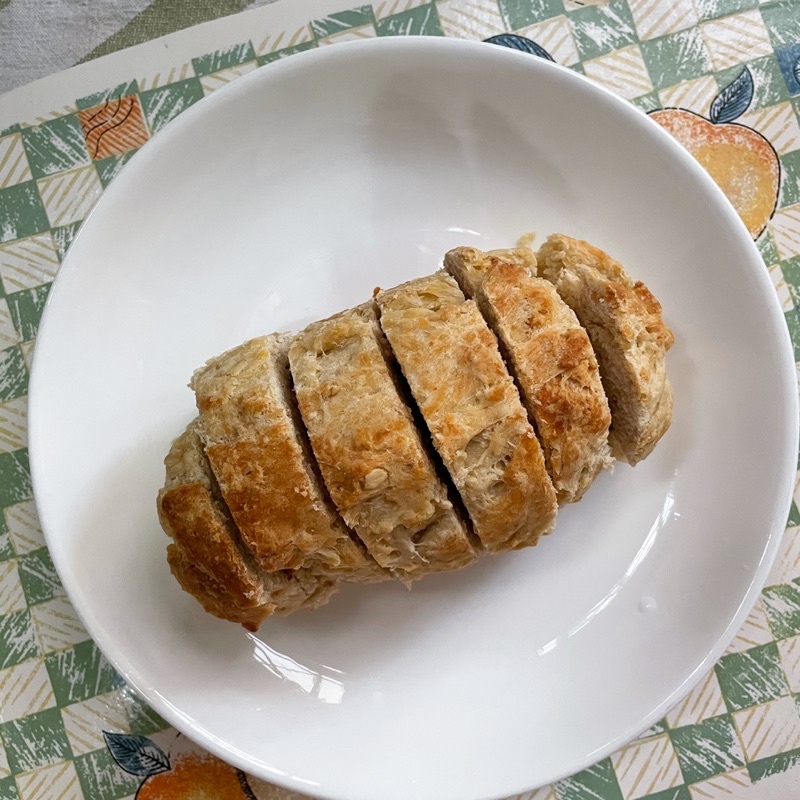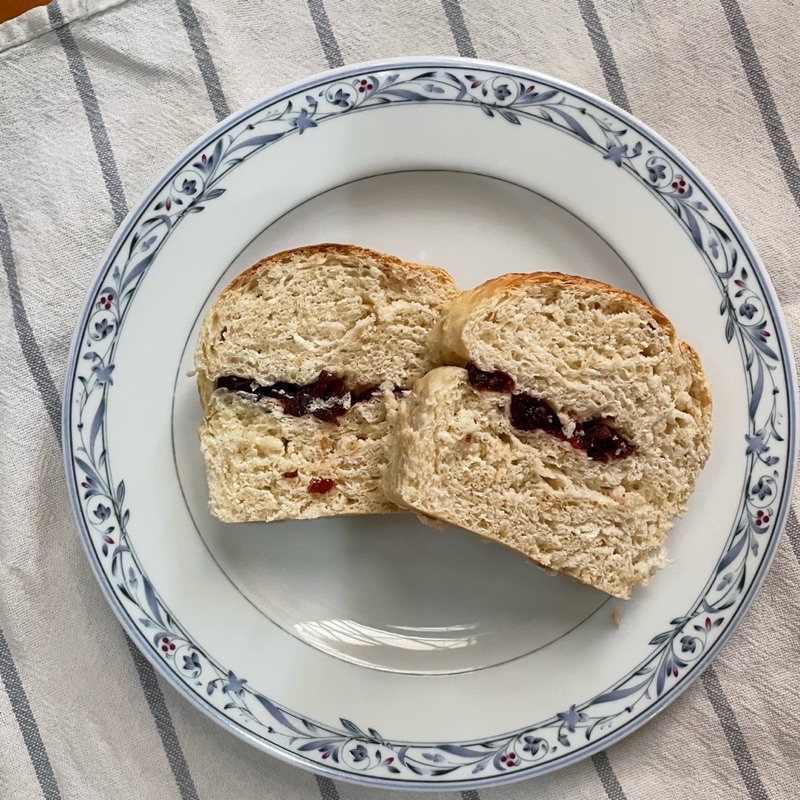 ขนมปังแครนเบอร์รี่น้ำผึ้ง ทำจากแป้งโฮลวีตและอัลมอลด์ ไม่ใส่น้ำตาล มีชิ้นแครนเบอร์รี่เต็มๆ รสชาติเค็มนิดๆมีรสเปรี้ยวอมหวานของแครนเบอร์รี่หน่อยๆ (39kcal/ชิ้น)