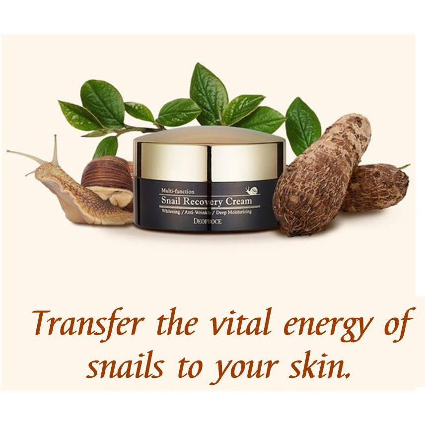 Deoproce snail Recovery cream เป็นครีมให้ความชุ่มชื้นและต่อต้านริ้วรอยที่ทำจากสารกรองการหลั่งหอยทาก