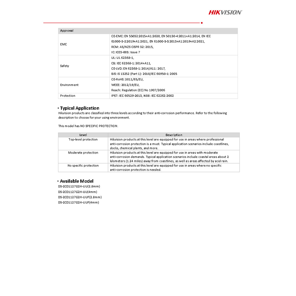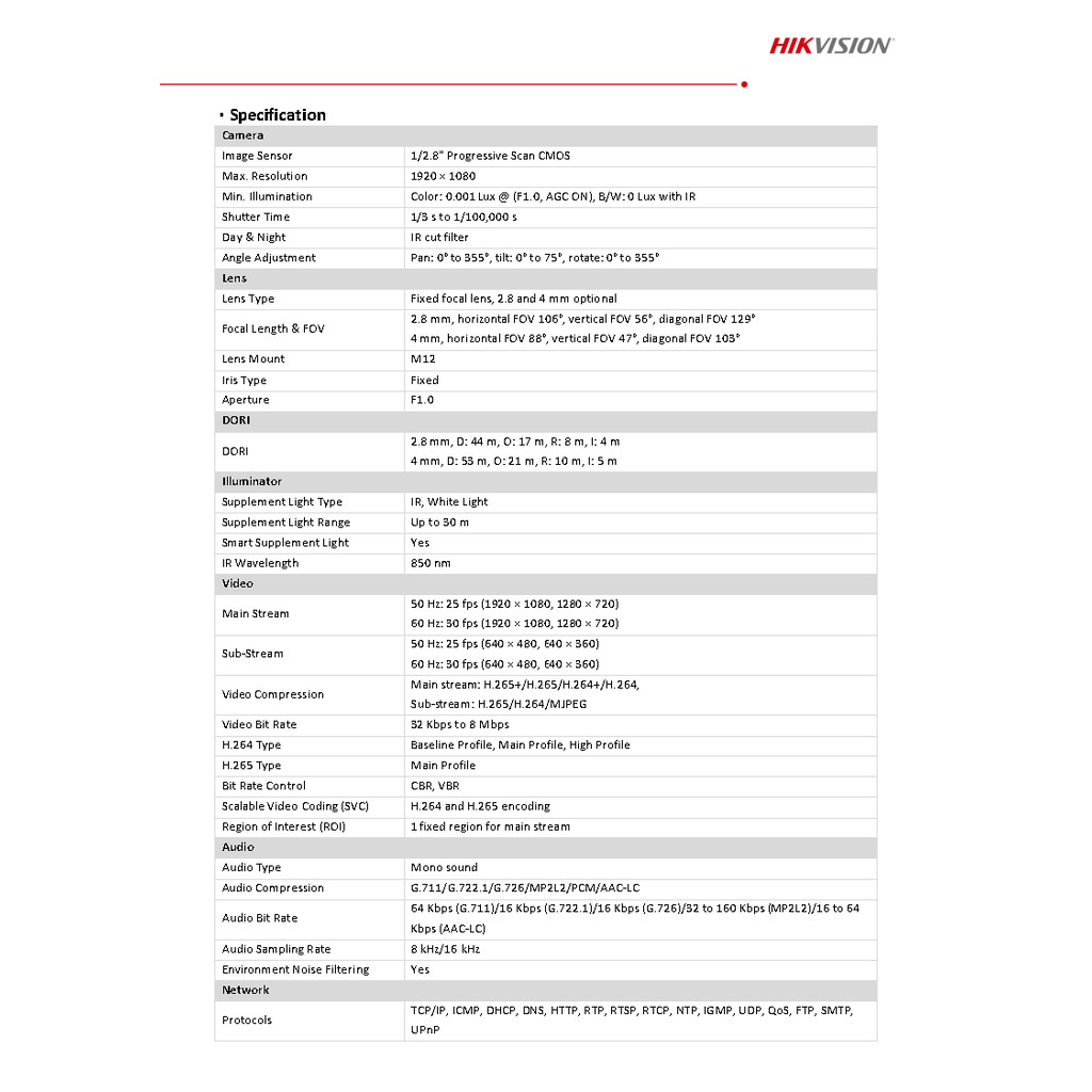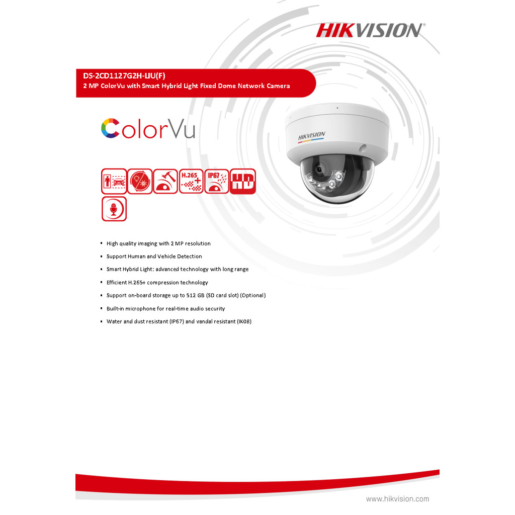 DS-2CD1127G2H-LIU 2 MP ColorVu with Smart Hybrid Light Fixed Dome Network Camera