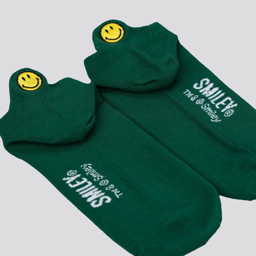 EMBROIDERED SMILEY® FACE NO SHOW TAB SOCKS (GREEN)