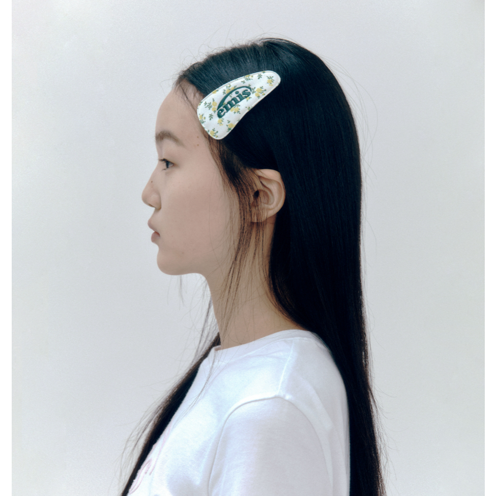 กิ๊บติดผมลายดอกไม้ เหมาะกับช่วงฤดูใบไม้ผลิและฤดูร้อน ด้วยโทนอ่อน และโลโก้ EMIS ที่ปักอย่างประณีต ช่วยเพิ่มความน่ารักสดใสให้กับทุกลุคได้อย่างลงตัว