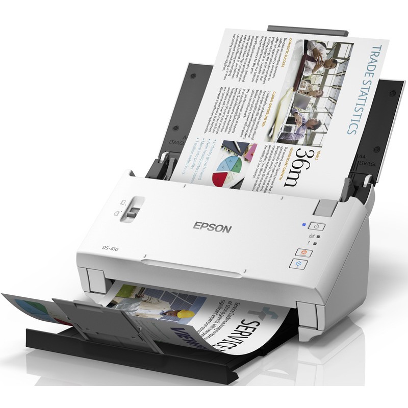 ยกระดับธุรกิจของคุณขึ้นไปอีกขั้นด้วย เอปสันสแกนเนอร์ WorkForce DS-410 ที่มาพร้อมกับฟังก์ชั่นการป้อนเอกสารอัตโนมัติ ตัวเครื่องขนาดกะทัดรัด สามารถสแกนนามบัตร หรือเอกสารต่างๆได้ถึงขนาดA3