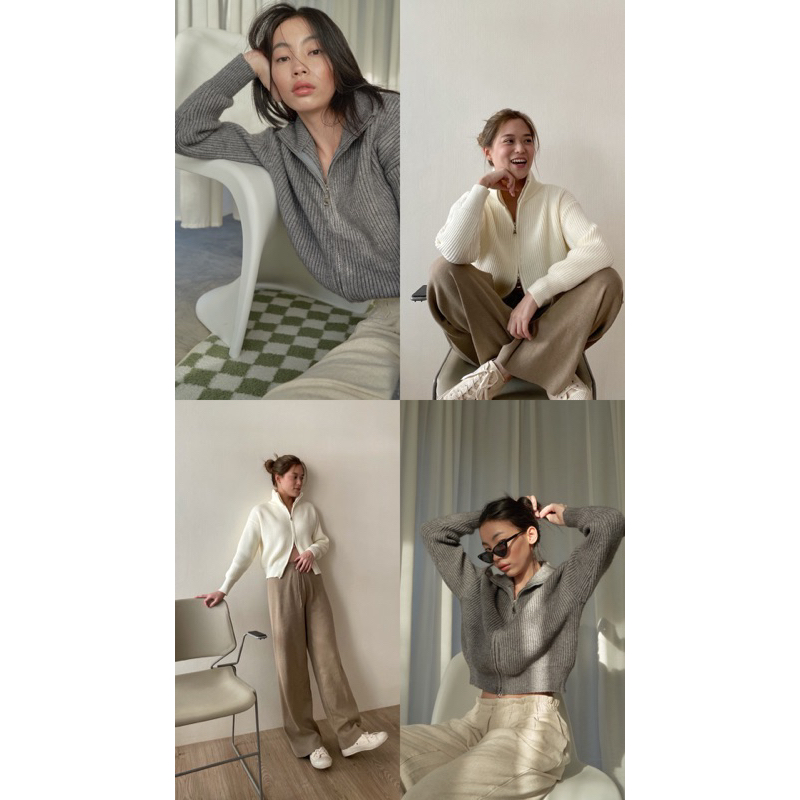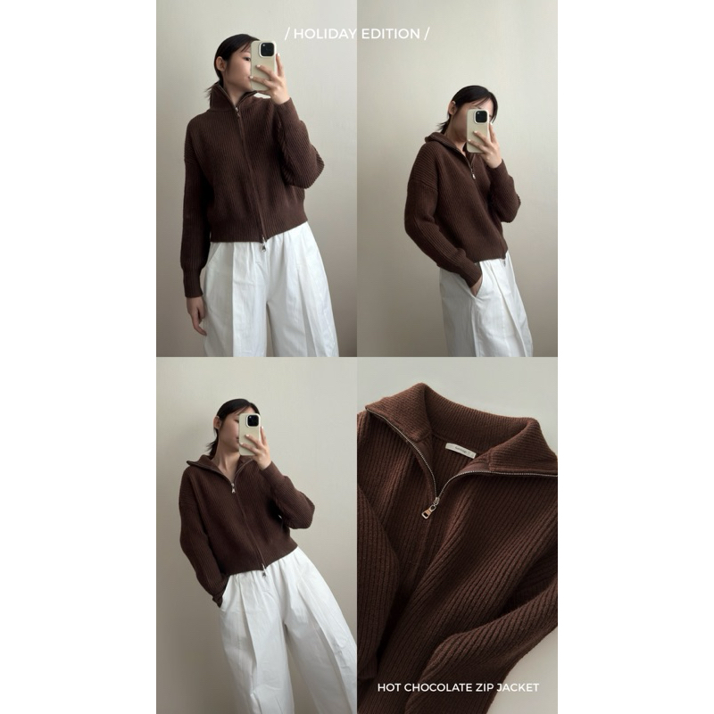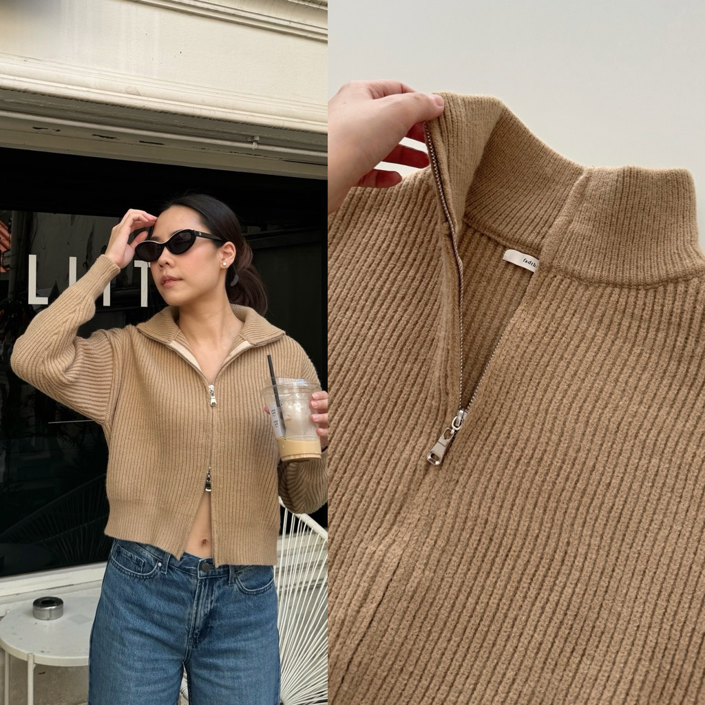 แจ๊คเกตไหมพรม คอปกตั้งดีเทลซิป2ด้าน รูดซิปได้สุดค่าตั้งแต่หัวถึงท้าย ใส่ได้หลายแบบมากๆ