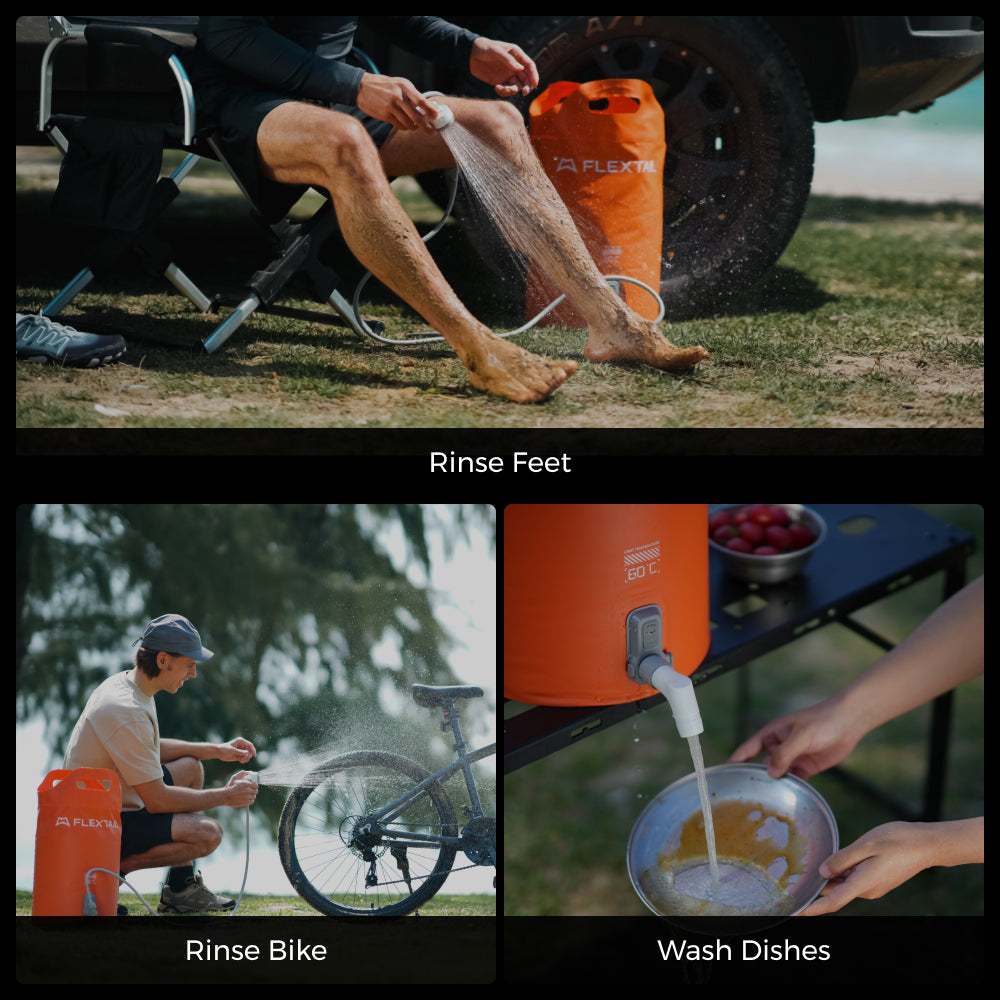 - สำหรับใช้ในพื้นที่ที่ไม่มีน้ำประปาหรือระบบฝักบัวถาวร เช่น ชายหาด ป่า ฯลฯ