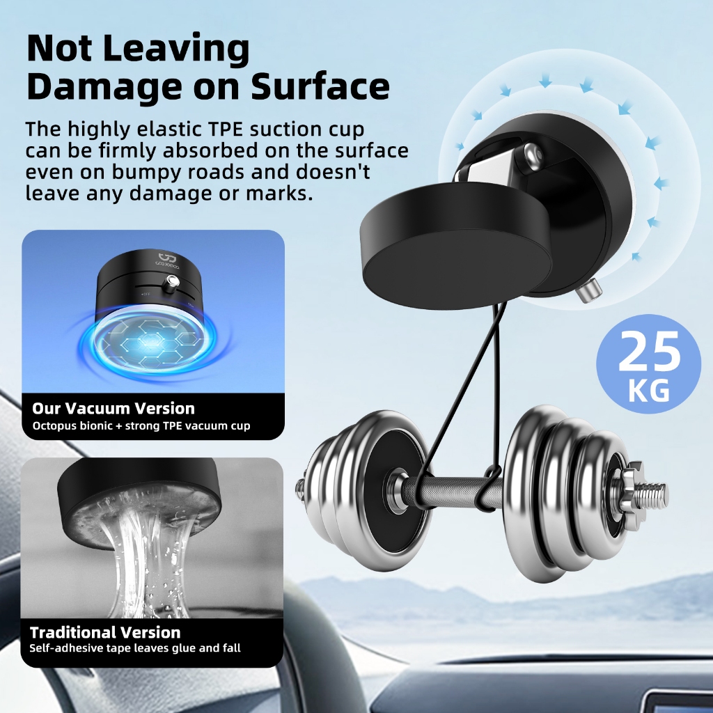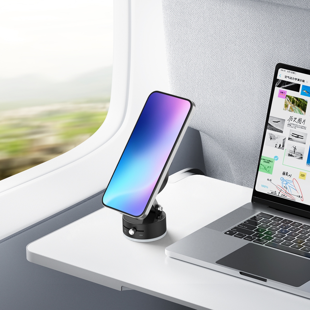 Strong Magnetic & Vacuum Absorption: Experience the ultimate stability with our mini phone stand, featuring 20 precision-arranged N52 super magnets for instant alignment and attachment. Coupled with the octopus-inspired TPE suction cup, it clings on tight even in the presence of dust or grime. This combination of vacuum suction and strong magnetism supports a weight capacity of up to 25kg, ensuring your phone stays put through every bump and vibration.