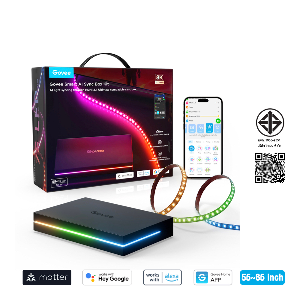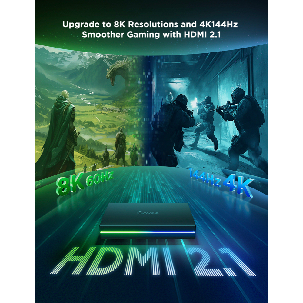 ดื่มด่ำไปกับความบันเทิงยุคใหม่ ยกระดับการตั้งค่าการเล่นเกมและการดูทีวีของคุณด้วย Govee AI Gaming & TV Sync Box Kit 2 มาพร้อมกับ HDMI 2.1 สำหรับภาพ 8K ที่ราบรื่นด้วย 60Hz และ 4K ที่ 144Hz สัมผัสกับแสง RGBWIC 4-in-1 ที่สดใส เอฟเฟกต์ที่ขับเคลื่อนโดย AI และลดความล่าช้าด้วยการรองรับ VRR และ ALLM อัปเกรดสู่ระดับใหม่ของการเล่นเกมและความบันเทิง