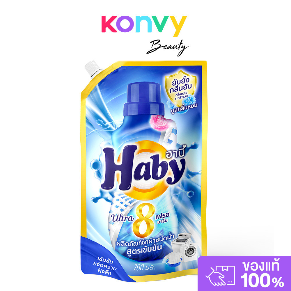 Haby Ultra8 Sparking [Pink]700mlน้ำยาซักผ้าสูตรเข้มข้นเพิ่มพลังขจัดคราบบูสต์กลิ่นหอมให้กลิ่นหอมสะอาด ยับยั้งกลิ่นอับช่วยให้ผ้าสีสดใส มีส่วนผสมน้ำยาปรับผ้านุ่มสะดวกในขั้นตอนเดียว
