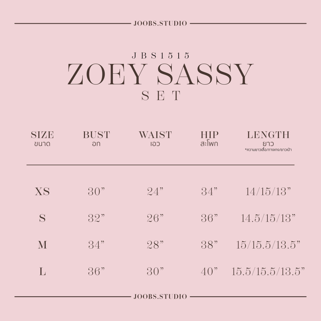 *ความยาวเสื้อ/กางเกง/ยาวเป้า