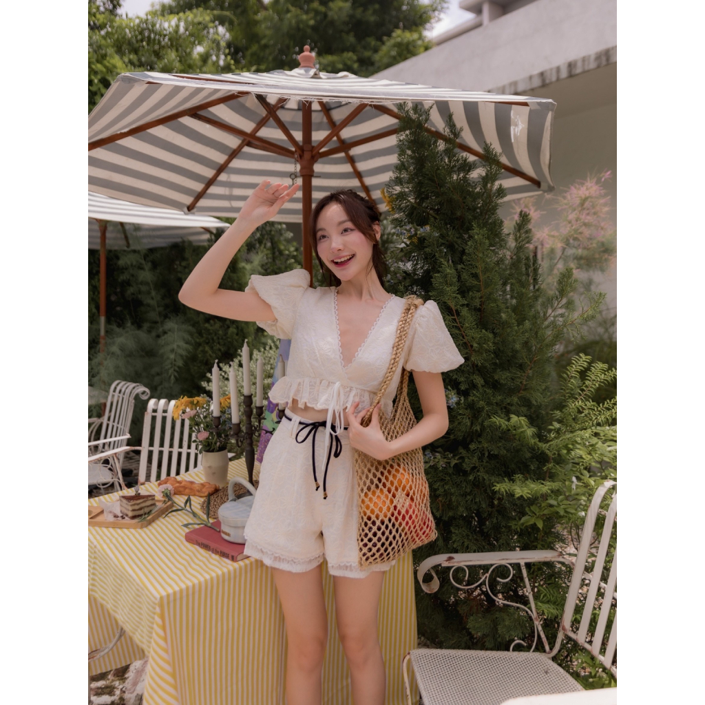 เซ็ต 3 ชิ้น เสื้อ+กางเกง+สายผูกเอว น้อยแต่มากของจริง ต้องยกให้ตัวนี้! ชีเป็นเซ็ตผ้าปักลายดอกไม้ งานแขนตุ๊กตามีสม็อค คอเป็นทรงวีลึก ประดับระบายรอบๆ ที่ช่วงเอวมีเชือกติดไว้ผูกโบว์น่ารักๆ มีซิปหลังและซับใน ใส่คู่กับกางเกงขาสั้น ปักด้วยลายเดียวกันคือเก๋เวอร์! มีกระเป๋าข้างทั้ง2ด้าน งานซิปหน้า มีตะขอติด และมีซับใน เรียบแต่โก้ไม่แพ้รุ่นอื่นเลย ตัวแม่ต้องเอาแล้วมั้ย!