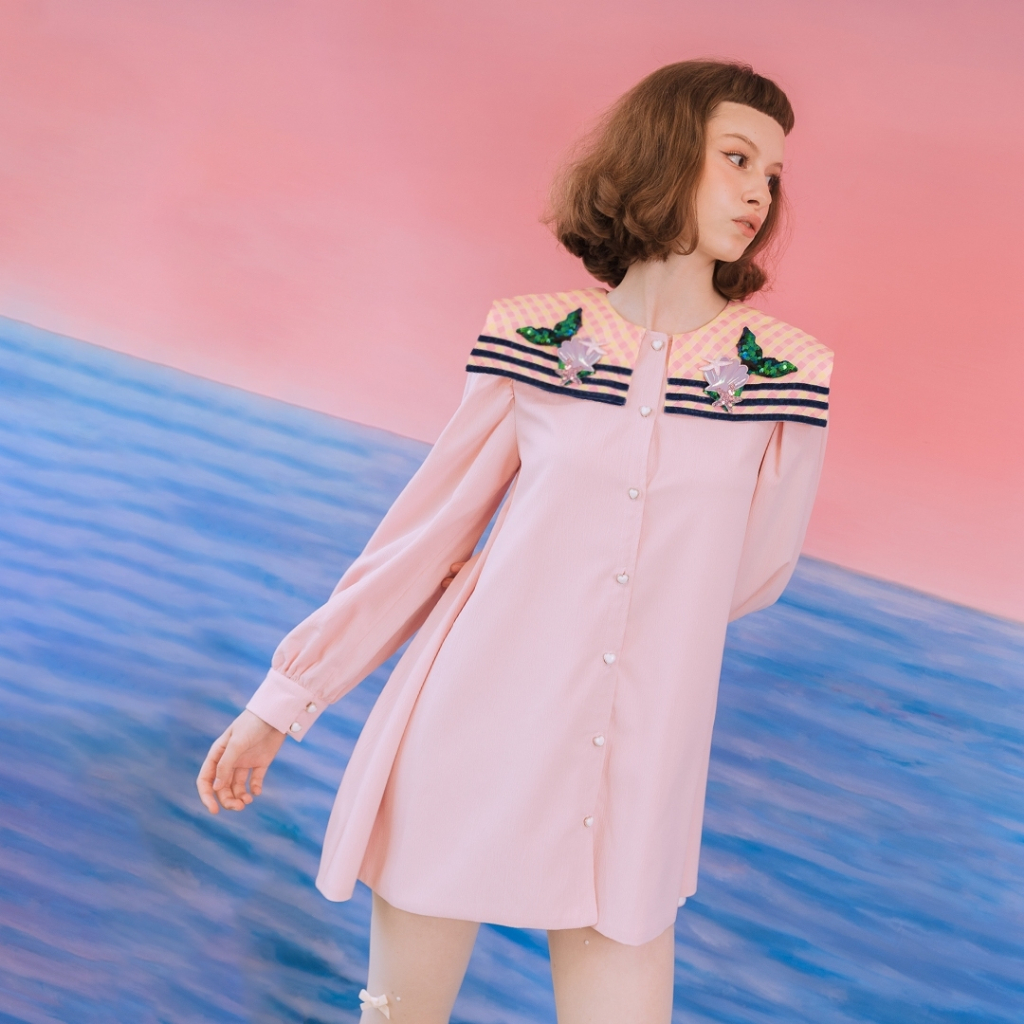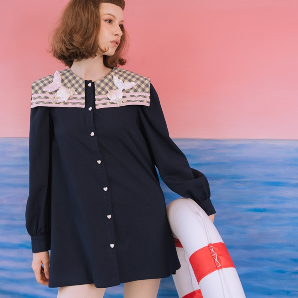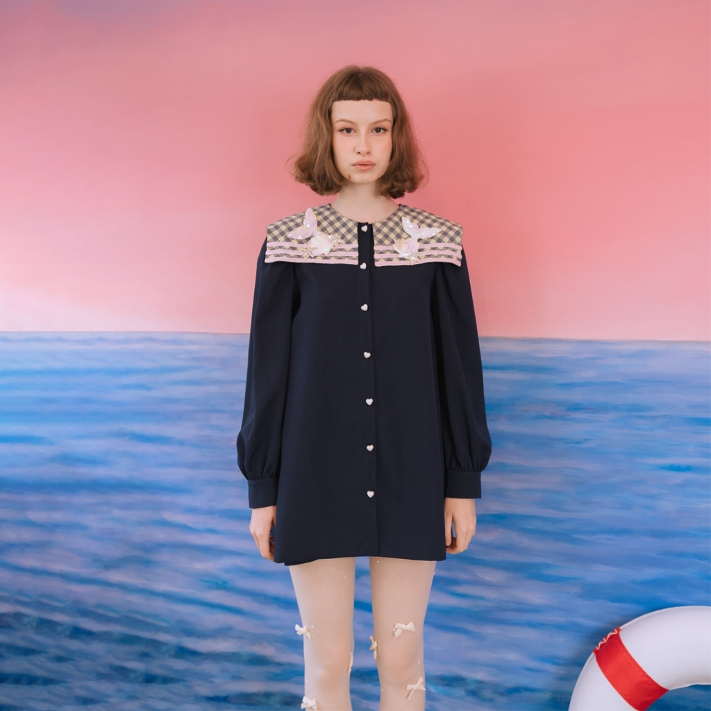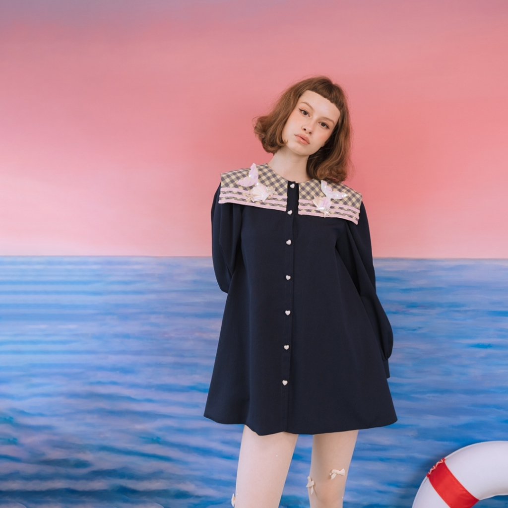 มินิเดรสน่ารักมาก ทรง A Line บานนิดๆกำลังดี มาพร้อมกิมมิกกระดุมหัวใจเปิดใช้งานได้จริง ไหล่เย็บจับจีบแขนบอลลูนพองนิดๆแต่ดูดีมาก ที่ปกแต่งด้วยน้องเมอเมดลงตัวสุดๆ มีซับในทั้งตัว จะใส่ไปทะเลก็เหมาะ ไปคาเฟ่ถ่ายรูปก็ดี
