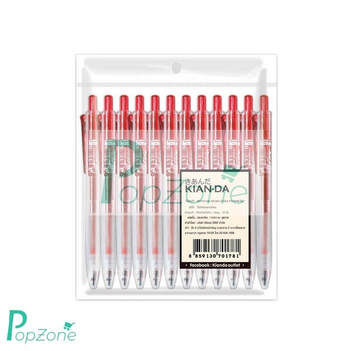 คุ้มค่ากลางๆ! KIAN-DA U-Click ปากกาเจลแดง 0.5 มม. (แพ็ก 12 ด้าม): เขียนลื่น แห้งไว จับสบาย...ราคาสุดลงตัว!