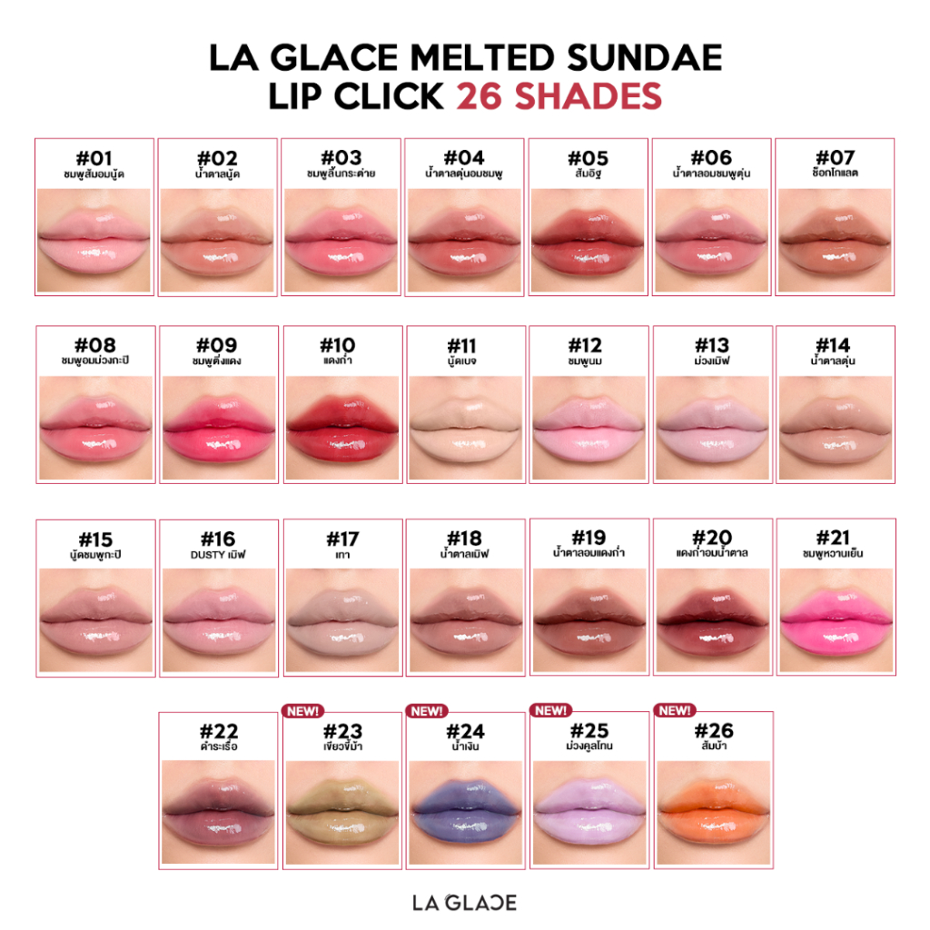 Together we bring to you 26 shades ลิปไอติมลากลาสที่เป็นมากกว่าลิป แต่เป็นคาแรคเตอร์ และจริตที่สามารถถือและใช้ตามฟีลแต่ละวัน: all shades curated to boost ur daily confidence