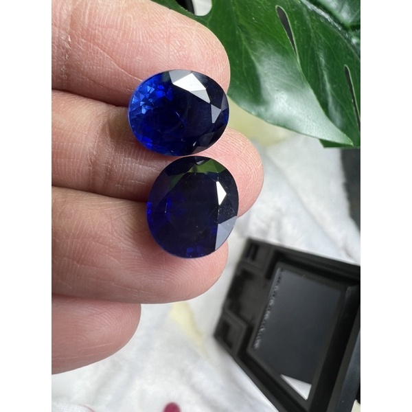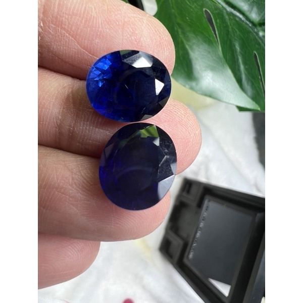 lab created Blue sapphire 12x10 oval 2 pieces