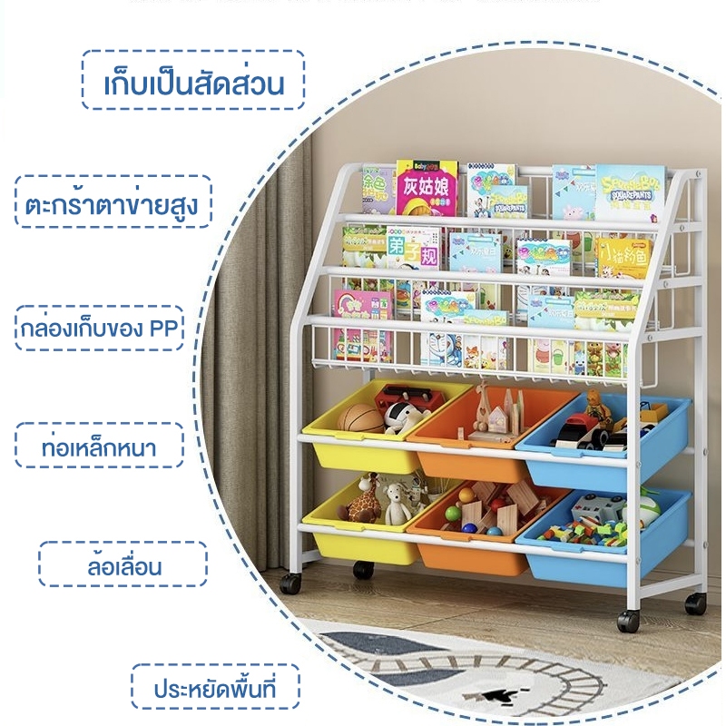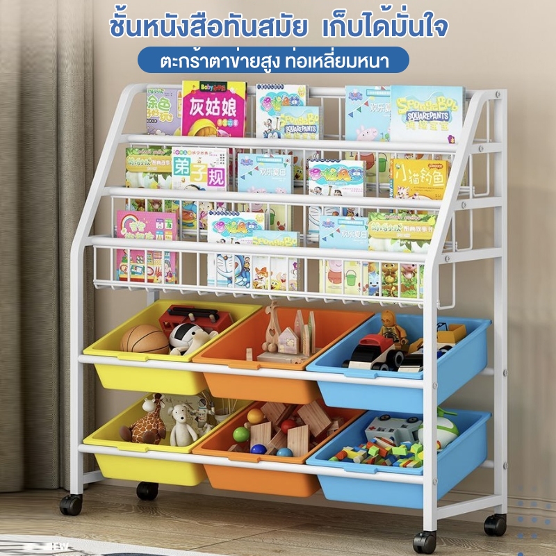 LDชั้นวางหนังสือเด็ก ชั้นหนังสือ ชั้นวางอเนกประสงค์ 3in1 การเสริมแรงแข็งแรงมากไม่ล้ม ติดตั้งง่ายขนาดใหญ่