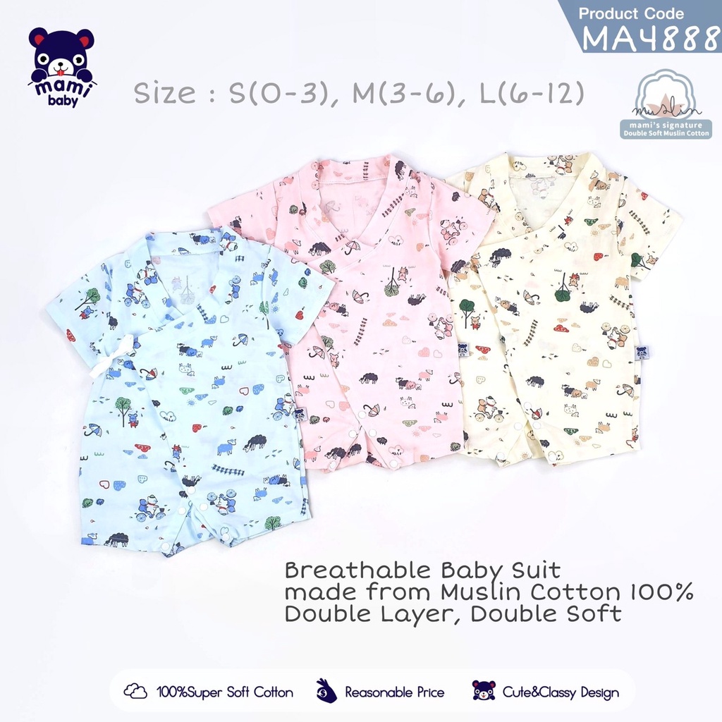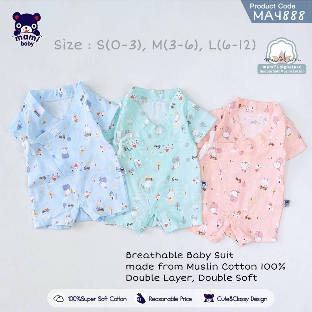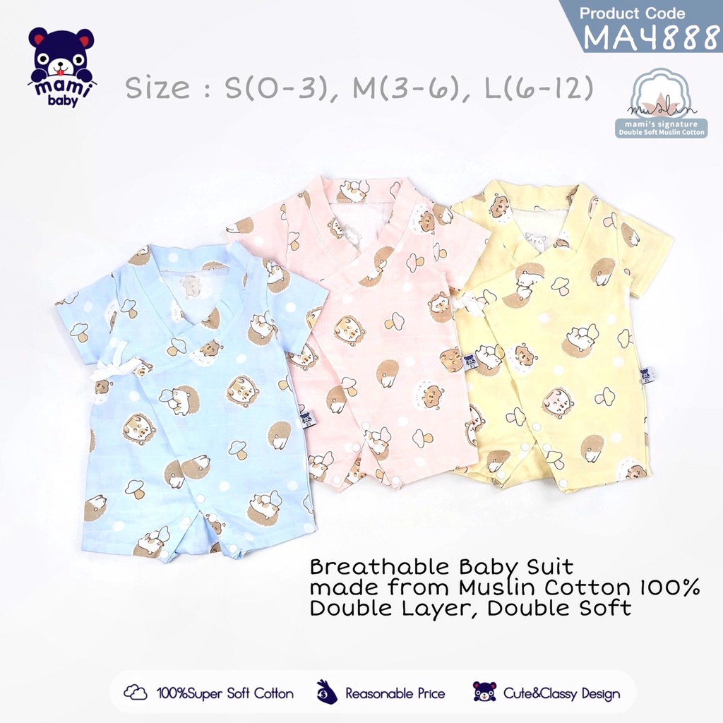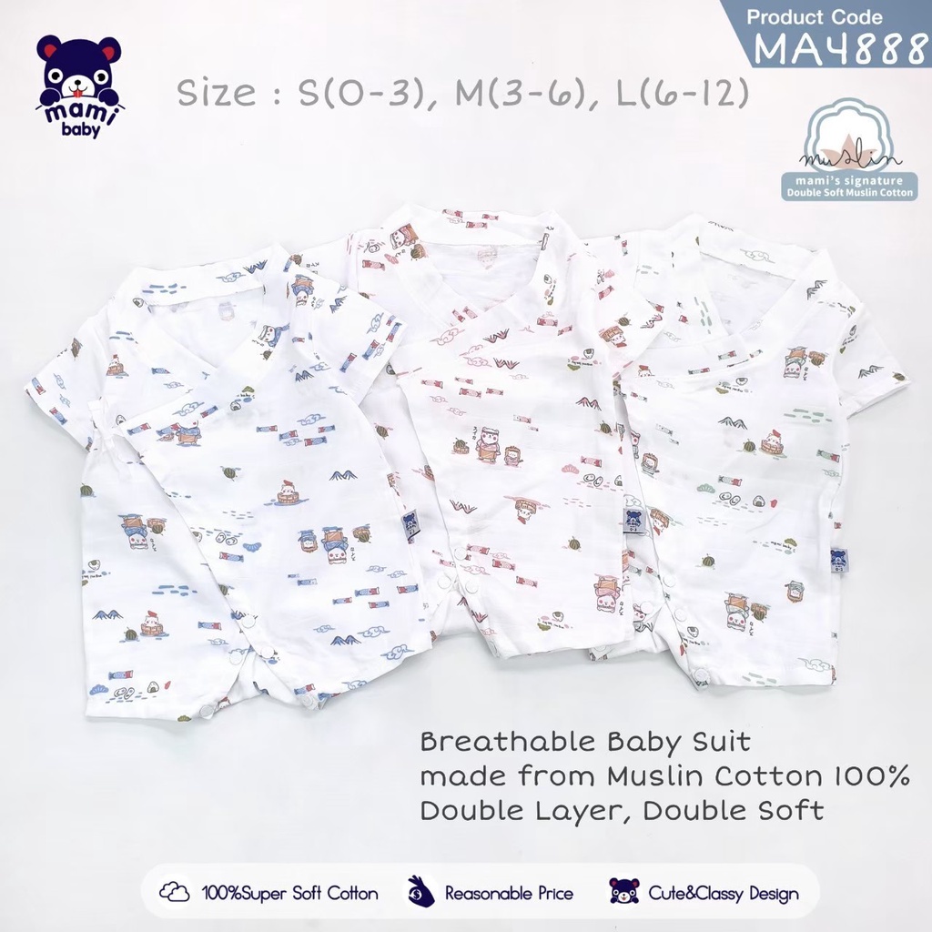 Mami Baby ชุดบอดี้สูทมัสลิน ยูกาตะ แบบเชือกผูก สำหรับเด็กแรกเกิด 0-12 m