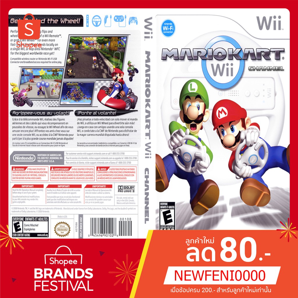 Start your engines and race with Mario and his friends with their finely tuned racing machines in Mario Kart Wii. Use 3 different control styles with the Wii Wheel included in the box. The worldwide race is on with a whole new set of tricks, tracks, and ways to play. Mario Kart Wii draws on courses and battle arenas from every game in the series - not to mention tons of new ones. The true king of the Mushroom Kingdom racing circuits will finally be crowned. Experience new tracks, enhanced Wii graphics, extraordinary gameplay and much more. Place first in Grand Prix circuits or clear skill-based missions to open up increasingly difficult and thrilling circuits. You can have multiplayer races on any open courses or battle in arenas. Now you can feel like you are Mario and steering to avoid obstacles and doing incredible stunts.
