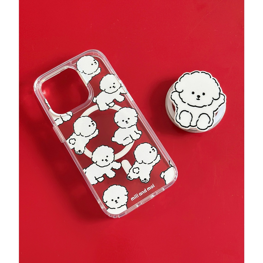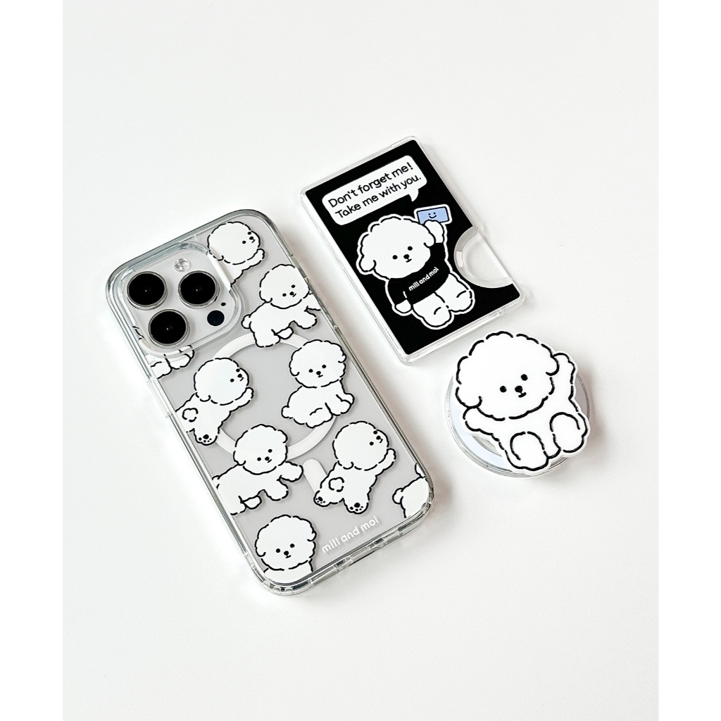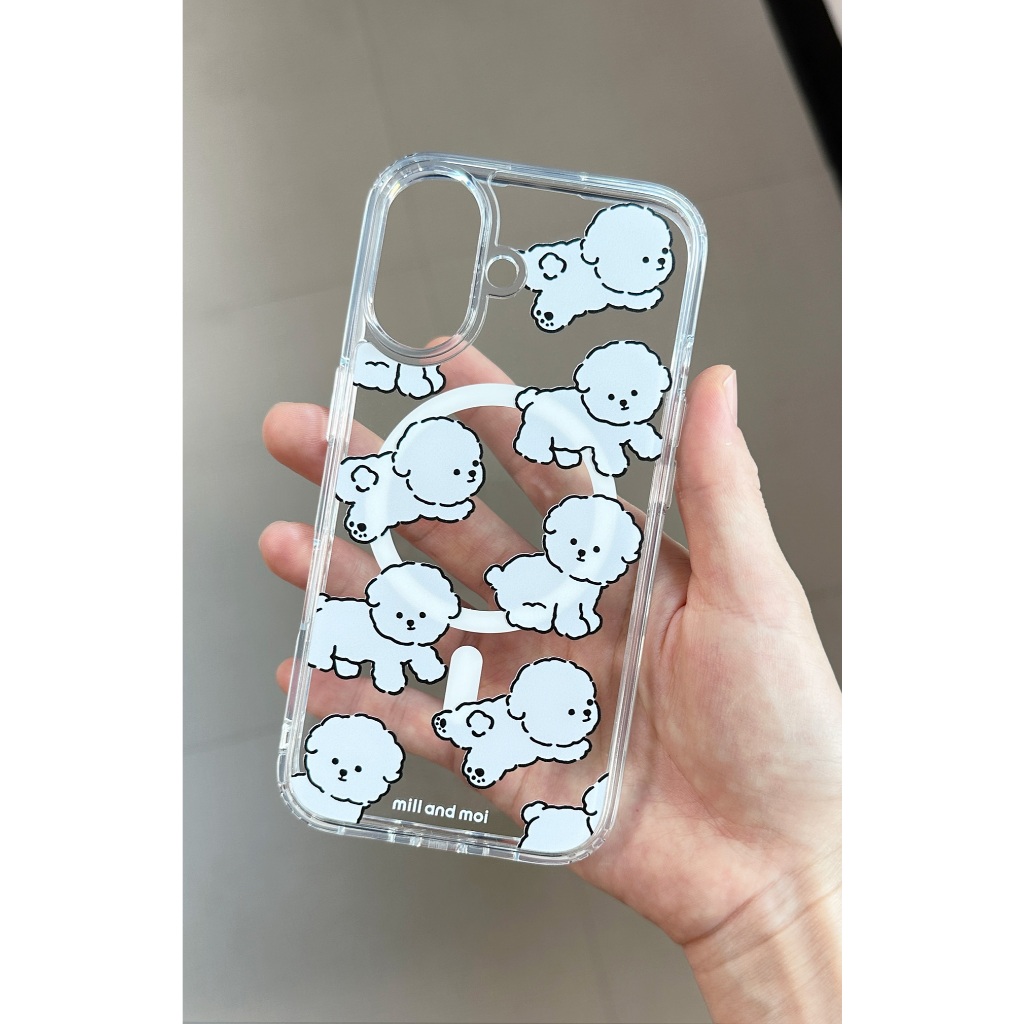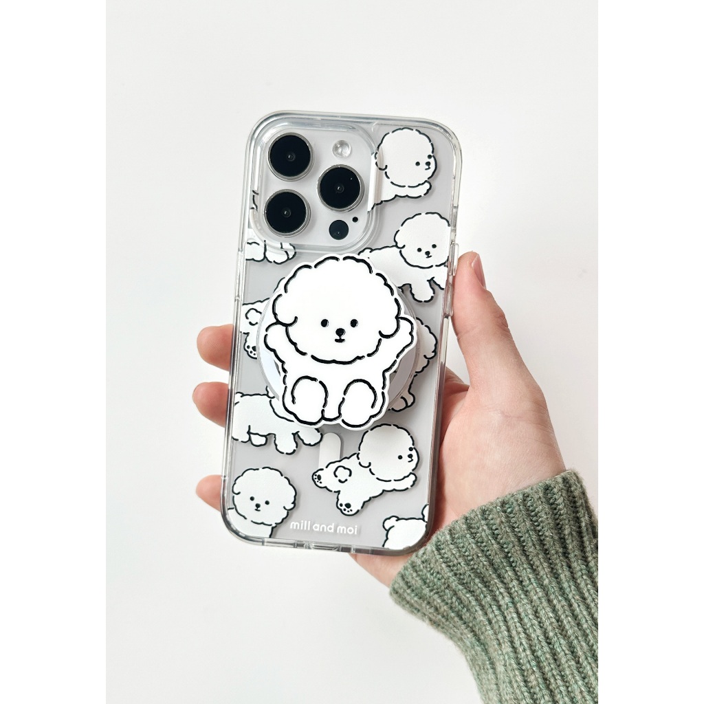 [Mill And Moi] Fluffy Bichon Magnetic Clear Phone Case