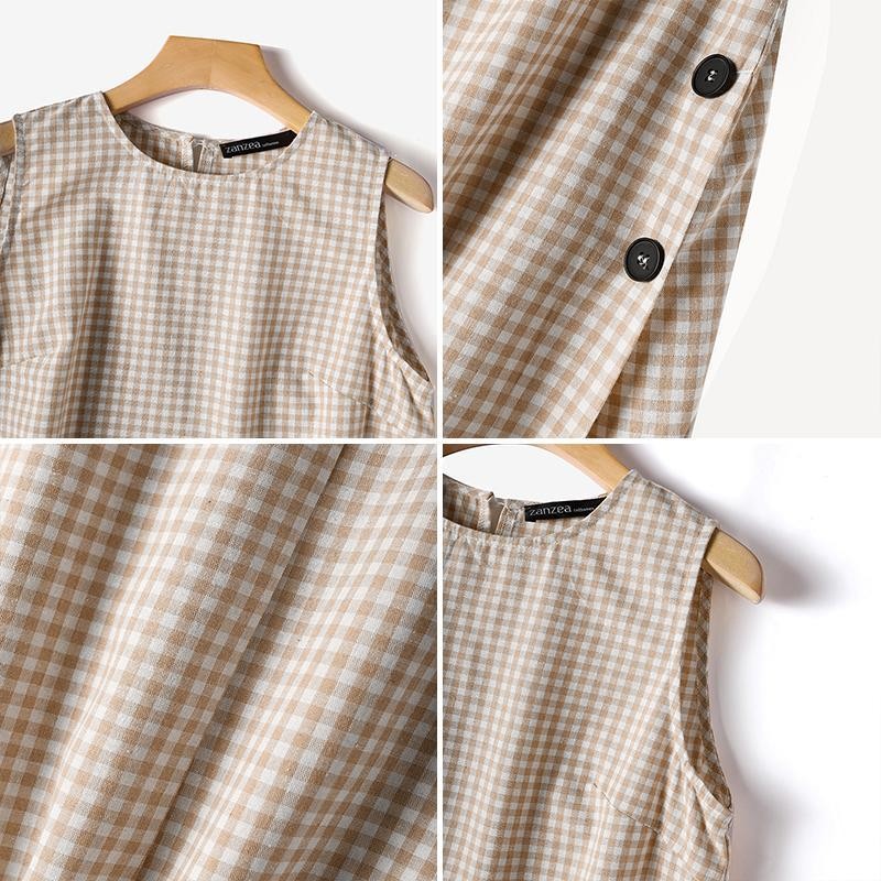 mimi&didi#เดรสทรงเอ สไตล์เกาหลี สำหรับผู้หญิง ลายสก็อตใหม่ แขนกุด คอกลม ลำลอง ทรงหลวม เดรสสายเดี่ยว#99133