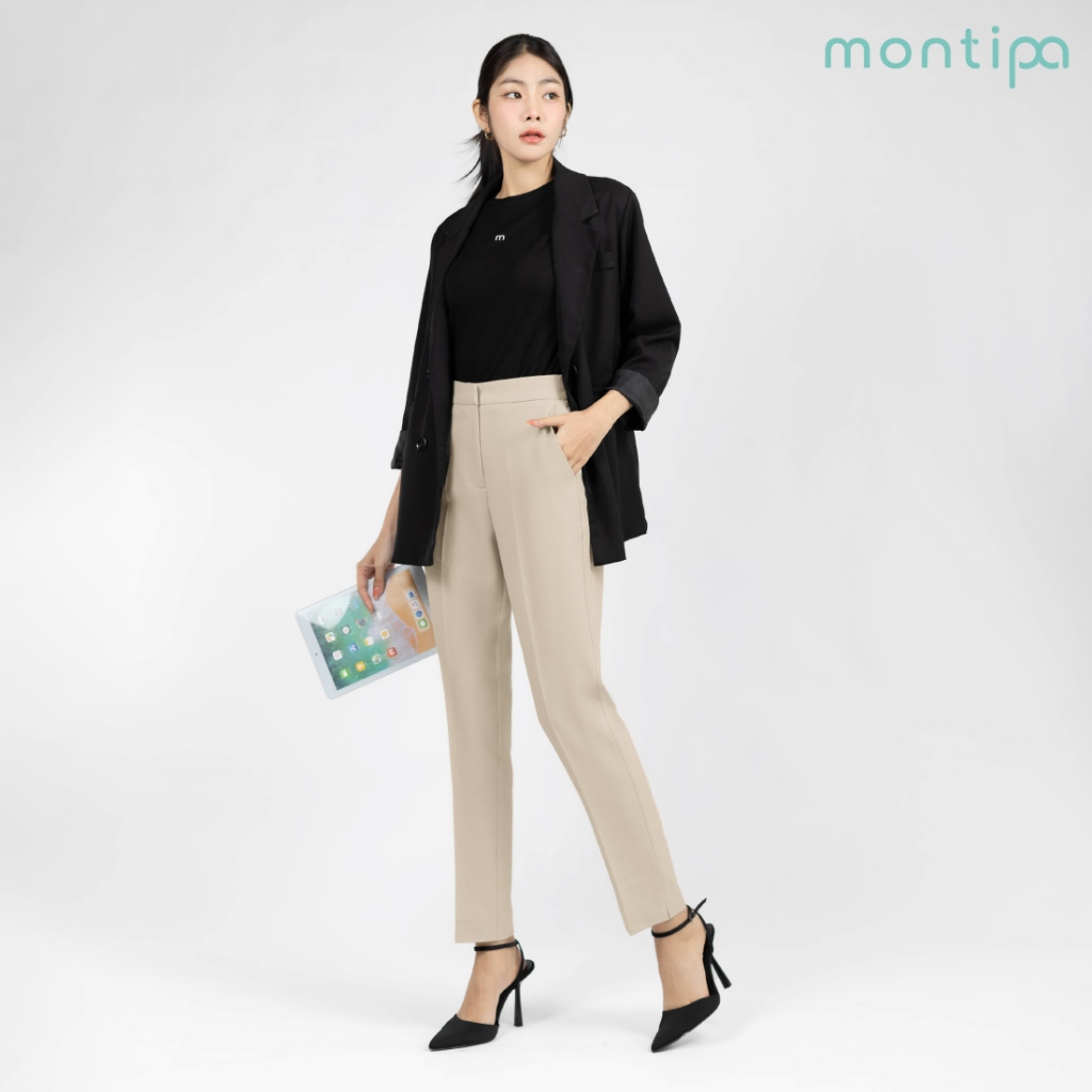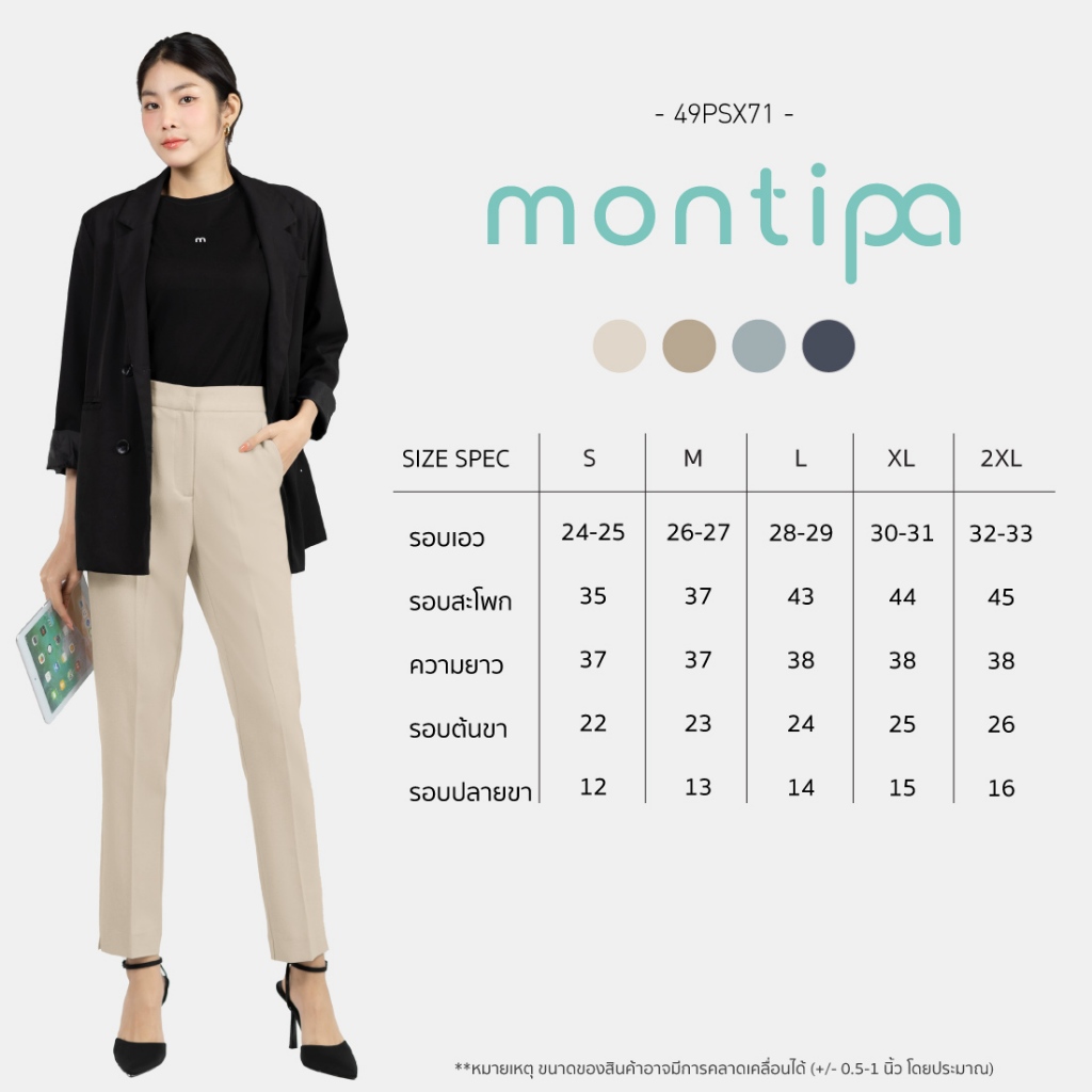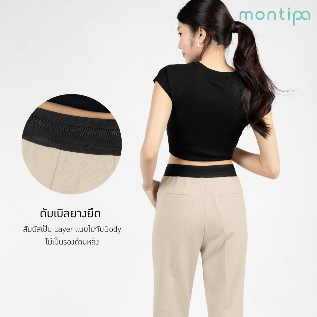 Montipa กางเกงทรงสอบ ซิปหน้า ดีเทลขอบเอวยางยืด ผ้าพรีเมี่ยม Comfort 49PSX71