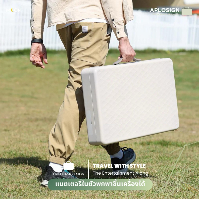 จินตนาการถึงกระเป๋าเอกสารที่ไม่ใช่แค่กระเป๋าเอกสารธรรมดา แต่เป็นประตูสู่ความบันเทิงไม่รู้จบ ไม่ว่าคุณจะกำลังเตรียมตัวไปงานปาร์ตี้ เดินป่าเขาใหญ่ ปีนผากระบี่ เตรียมตัวไปตั้งแคมป์ หรือเพียงแค่สนุกกับวันแดดออกที่ชายหาด Moon StickMe Go 27” Aplosign Smart Briefcase คือตัวช่วยที่ดีที่สุดของคุณ เปลี่ยนทุกสถานที่กลายเป็นเวทีความบันเทิง