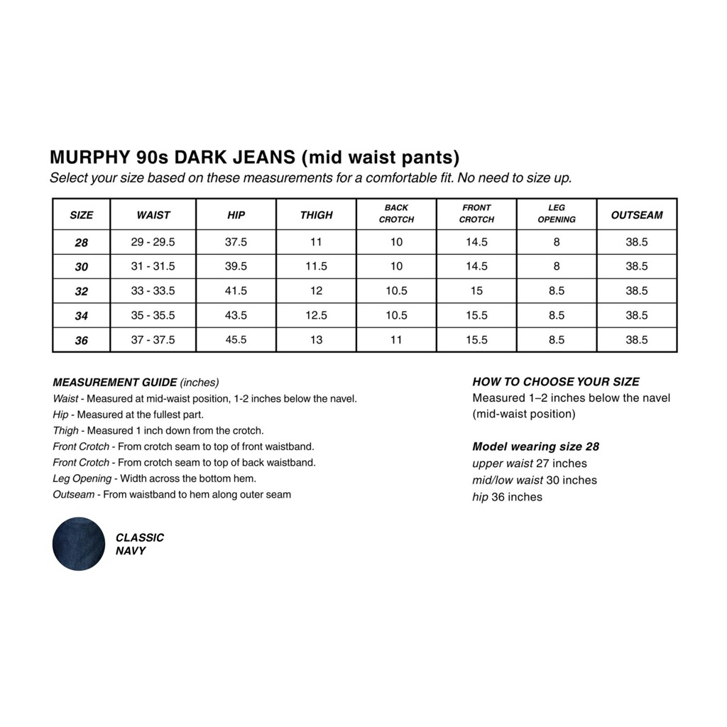 เอวล่าง : 33-33.5“ สะโพก 41.5” ต้นขา 12“ เป้าหน้า 10.5” เป้าหลัง 15“ ปลายขา 8.5” ขานอก 38.5“