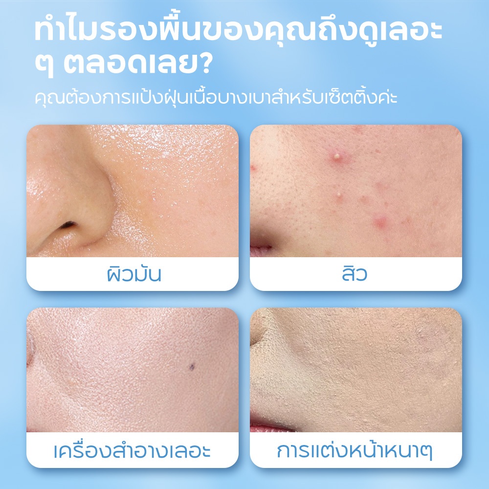 คุณสมบัติ: ควบคุมความมัน, ป้องกันสิว, เนื้อบางเบาไม่หนักหน้า